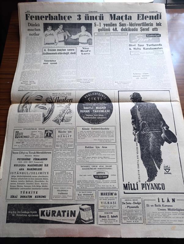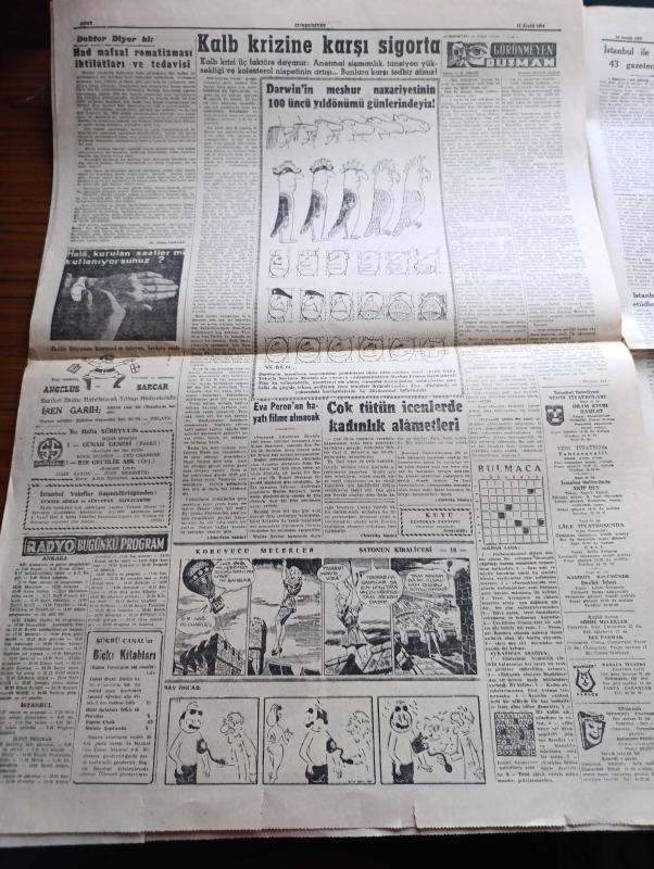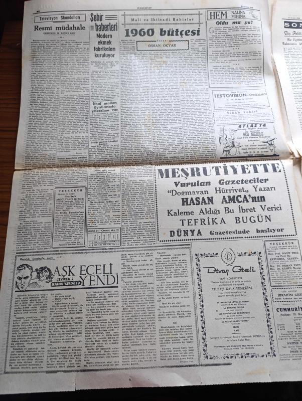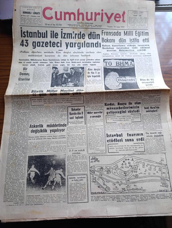 Cumhuriyet Gazetesi - 24 Aralık 1959 - Bir Demeç Üzerine Yazan Nadir Nadi Köşe Yazısı - İstanbul İle İzmir'de Dün 43 Gazeteci Yargılandı - Pulliam Davaları - Dün Kim Dergisi Mesullerine Polis Tarafından Tebligat Yapılırken Fotoğrafı - Kim Dergisi De Dün 1 Ay İçin Kapatıldı - Fransa'da Milli Eğitim Bakanı Dün İstifa Etti - Nice'i 5 1 Yenilen Fenerbahçe Elendi Fotoğrafı - Sağlık Bakanı Lütfi Kırdar Rusya İle Olan Münasebetlerimizin Gelişeceğini Söyledi - Saidi Nursi'nin Mektupları - İstanbul Fuarını Gösteren Kroki - Modern Ekmek Fabrikaları Kuruluyor - 1960 Bütçesi Yazan Osman Okyar - Divan Oteli - Kumar Salgını Yazan Burhan Felek Köşe Yazısı - Papa Komünizme Çattı - Darwin'in Meşhur Nazariyesinin 100. Yıldönümü Günlerindeyiz - Günah Gemisi Filmi Bu Hafta Süreyya'da - Yeni Tiyatroda Tahtaravalli Yazan Çetin Altan - 1959 1960 Yunus Nadi Armağanı Dil Davamız Türk Dili Üzerine Yazan Zekai Turan - Galatasaray İstanbulspor Maçının Biletleri Çift Tarifeli - Agah Erozan - Boks Federasyonu adlı eser, Kitap > Bilim, Teknik, Araştırma kategorisinde İkinci El olarak satıştadır.