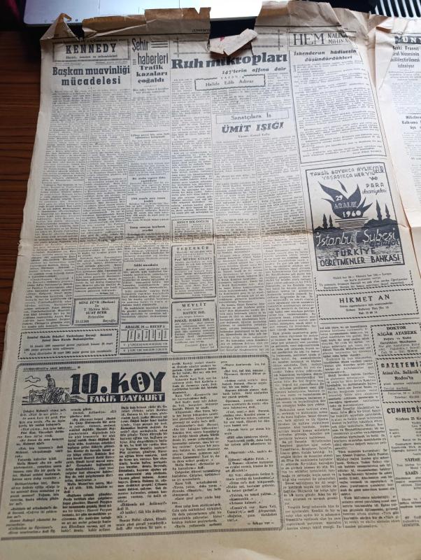 Cumhuriyet Gazetesi - 24 Aralık 1960 - Dikensiz Gül Olmaz Yazan Nadir Nadi Köşe Yazısı - Milli Birlik Komitesi'nin Kurucu Meclisle İlgili Tebliği Maksatlı Çevrelere İhtarda Bulunuldu - Börekçi Ali'nin Bu Sabah İdamı Bekleniyordu - Temsilci Seçme Faaliyeti - Yüksek Adalet Divanı Ve Soruşturma Kurulu İle İlgili Kanunun Metni - Bazı Düşükler Umumî Mahkemeye Sevkedilecek - İnkılap Şehidi Kubilay'ın Şehadetinin Yıldönümü - Şemseddin Günaltay Dünkü Celsede Celal Bayar'ı Şiddetle İtham Etti - Atatürk Heykeline Saldırının 11 Zanlısı Dün Birbirleri İle Yüzleştirildi - Moskova Patriği Aleksi Dün Geldi - 10. Köy Yazan Fakir Baykurt Yazı Dizisi - Amerika'nın En Genç Başkanı Kennedy Hayatı Macera Ve Mücadeleleri Yazan James MacGregor Yazı Dizisi - Ruh Mikropları 147'lerin Affına Dair Yazan Halide Edip Adıvar Köşe Yazısı - Irak'taki Fransız Petrol Hissesinin Millileştirilmesi İsteniyor - Dünyanın En Pahalı Tablosu Somurtan Joconde - Galatasaray Ankaragücü Maçı - Can Bartu -Galatasaray Voleybolcuları, Yunus Nadi tarafından kaleme alınmıştır. Cumhuriyet Gazetesi - 24 Aralık 1960 - Dikensiz Gül Olmaz Yazan Nadir Nadi Köşe Yazısı - Milli Birlik Komitesi'nin Kurucu Meclisle İlgili Tebliği Maksatlı Çevrelere İhtarda Bulunuldu - Börekçi Ali'nin Bu Sabah İdamı Bekleniyordu - Temsilci Seçme Faaliyeti - Yüksek Adalet Divanı Ve Soruşturma Kurulu İle İlgili Kanunun Metni - Bazı Düşükler Umumî Mahkemeye Sevkedilecek - İnkılap Şehidi Kubilay'ın Şehadetinin Yıldönümü - Şemseddin Günaltay Dünkü Celsede Celal Bayar'ı Şiddetle İtham Etti - Atatürk Heykeline Saldırının 11 Zanlısı Dün Birbirleri İle Yüzleştirildi - Moskova Patriği Aleksi Dün Geldi - 10. Köy Yazan Fakir Baykurt Yazı Dizisi - Amerika'nın En Genç Başkanı Kennedy Hayatı Macera Ve Mücadeleleri Yazan James MacGregor Yazı Dizisi - Ruh Mikropları 147'lerin Affına Dair Yazan Halide Edip Adıvar Köşe Yazısı - Irak'taki Fransız Petrol Hissesinin Millileştirilmesi İsteniyor - Dünyanın En Pahalı Tablosu Somurtan Joconde - Galatasaray Ankaragücü Maçı - Can Bartu -Galatasaray Voleybolcuları adlı eser Türkçe dilindedir.