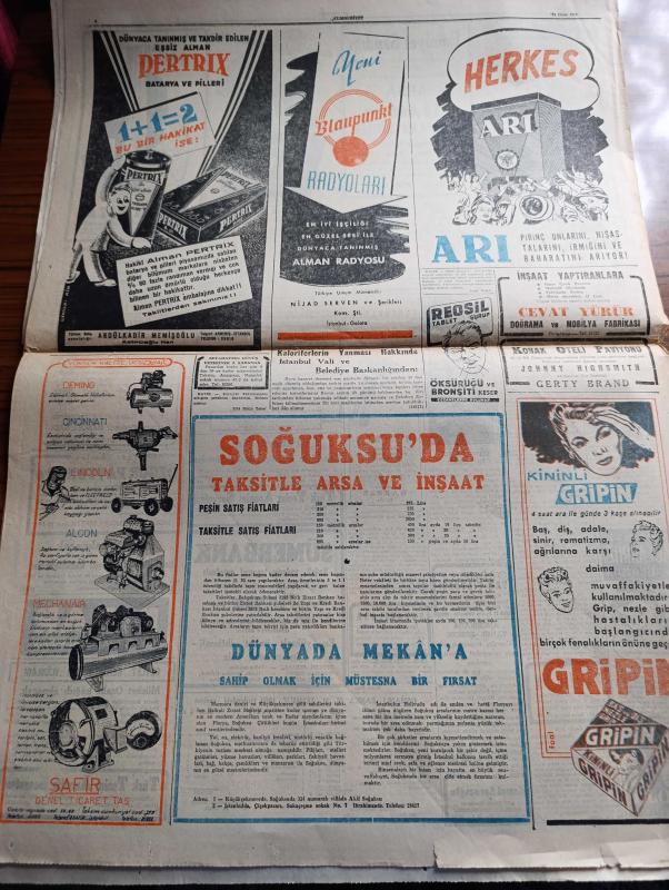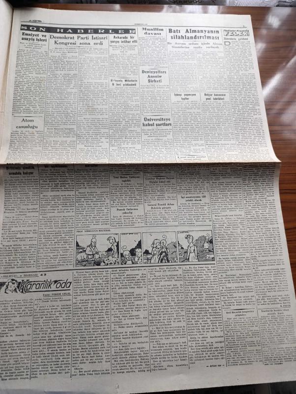 Cumhuriyet Gazetesi - 24 Ekim 1950 - Muallim davası Cumhuriyet Başmakale - Demokrat Parti istişari Kongresi sona erdi - Kore'deki Savaş birliğimiz şimdilik cenupta kalıyor - Türk askeri heyeti azaları cephede fotoğraf - Birleşmiş Milletler'in 5. yıldönümü - Yüksek Öğretmen Okulu dün törenle açıldı - sayın neticeleri iki üç güne kadar ilan edilecek - Atina'da açılan Türk ressamları sergisi fotoğraf - yeni Sovyet başkonsolosluğu Petrov Vali Fahrettin Kerim Gökay'ı ziyaret etti - karanlık oda yazan Peride Celal yazı dizisi - Batı Almanya'nın silahlandırılması - zümrelerin galebesi yazan Burhan Felek - hep o masal yazan Kemal Ragıp enson yazı dizisi - Türkiye yüzme birincilikleri yazan Suat Erler - Türkiye yüzme şampiyonlarından Haldun İşmen Ve Süha Erler Fotoğraf -şehzadebaşı'nda yeni modern Turan sineması - Kahraman Yahudi Yıldız ve İnci sinemalarında - Türk Mısır milli maçını radyo verecek - 1950 1951 Yunus Nadi Mükafatı Milli Mücadeleye Ait Bir Hatıra Rahime Onbaşı adlı eser, Kitap > Süreli Yayınlar > Gazeteler > Türkiye > Genel > Günlük kategorisinde İkinci El olarak satıştadır.