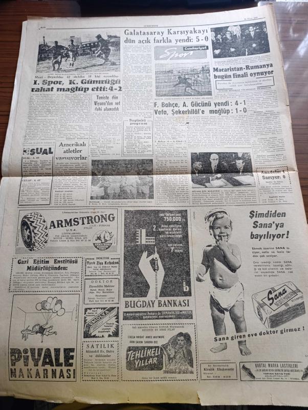 Cumhuriyet Gazetesi - 24 Nisan 1960 - kişiyi nasıl bilirsin yazan Nadir Nadi Başmakale - İsmet İnönü'nün 23 Nisan için gençlere Hitabesi Fotoğraf - cumhurbaşkanı Celal Bayar Dün çocukları kabul ediyor fotoğraf - 23 Nisan bütün yurtta heyecanla kutlandı - üniversiteliler Dün Atatürk'ün gençliğe hitabesini dağıttılar - Gebze'de yapılan 23 Nisan merasimi fotoğraf - Petrol zaferisinin temeli Dün İzmit'te Başbakan Adnan Menderes'in katılımıyla atıldı fotoğraf - Mazlum Kayalar'ın eşi Melahat Kayalar Dün İsmet İnönü'ye bağlılık telgrafı çekti - Kore seçimleri yenilenecek - Kıbrıs'ta EOKA mensupları yine faaliyete geçti - Evlerden Biri yazan Orhan Kemal Yazı Dizisi - Amerika'da tiyatro yazan Muhsin Ertuğrul - Devlet Tiyatrosu şan sinemasında Arzu tramvayı - Tosca rolü ile Opera sahnesine ilk defa çıkarak başarı kazanan soprano Meral Menderes fotoğraf - Kleopatra meselesi devam ediyor - tevhit bilge tiyatrosu - haftanın şakaları yazan Burhan Felek - Galatasaray Karşıyaka'yı 5-0 yendi adlı eser, Kitap > Süreli Yayınlar > Gazeteler > Türkiye > Genel > Günlük kategorisinde İkinci El olarak satıştadır.