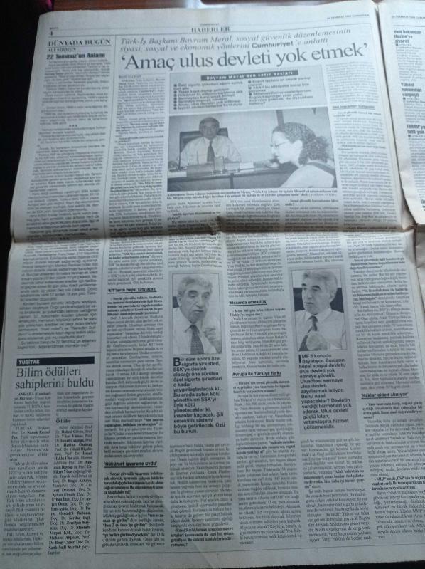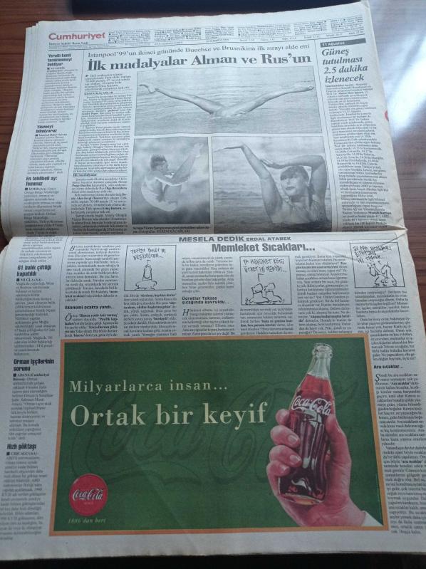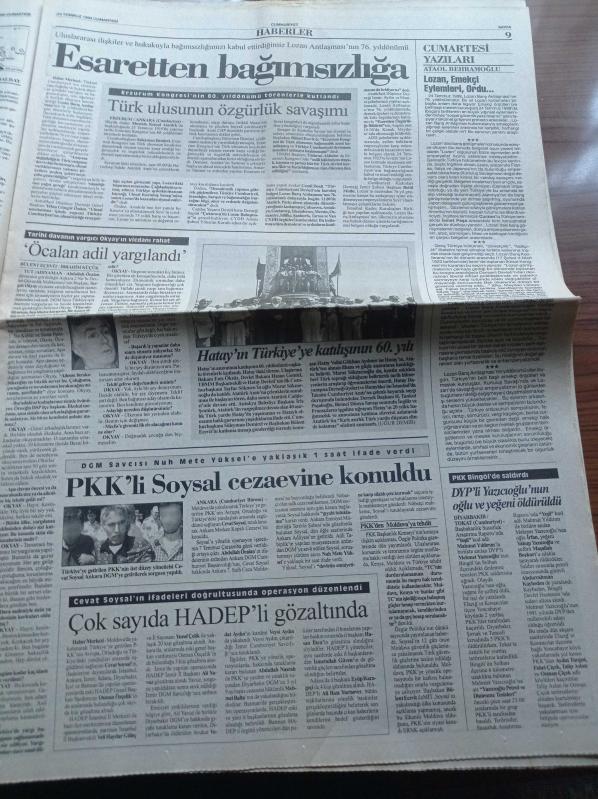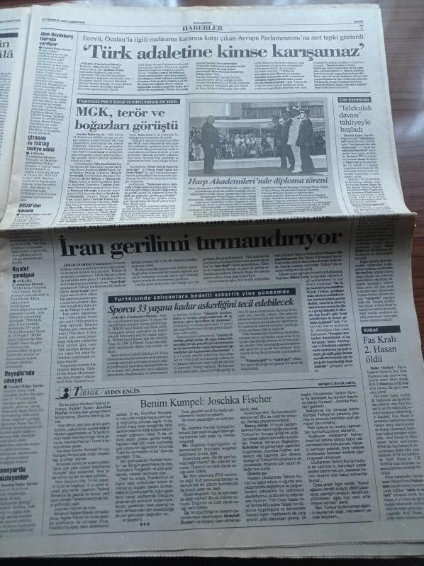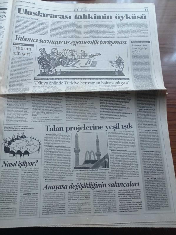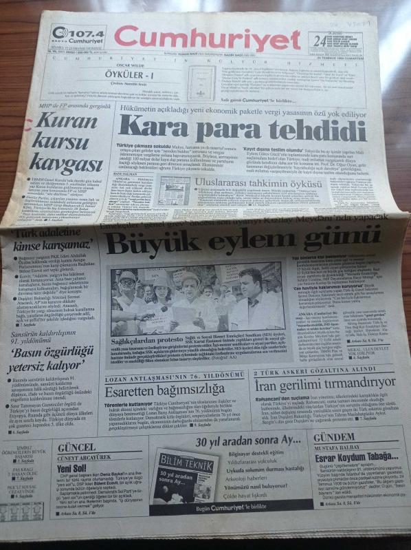 Cumhuriyet Gazetesi - 24 Temmuz 1999 - TSYD Kupasında Fenerbahçe Galatasaray Maçı - MHP İle Fazilet Partisi Arasında Kuran Kursu Kavgası - Türk İş Bayram Meral Amaç Ulus Devleti Yok Etmek - Lozan Antlaşması'nın Yıldönümü - Sağlıkçılardan Protesto - Basın Özgürlüğü Yetersiz Kalıyor - Kara Para Tehdidi adlı eser Türkçe dilindedir.