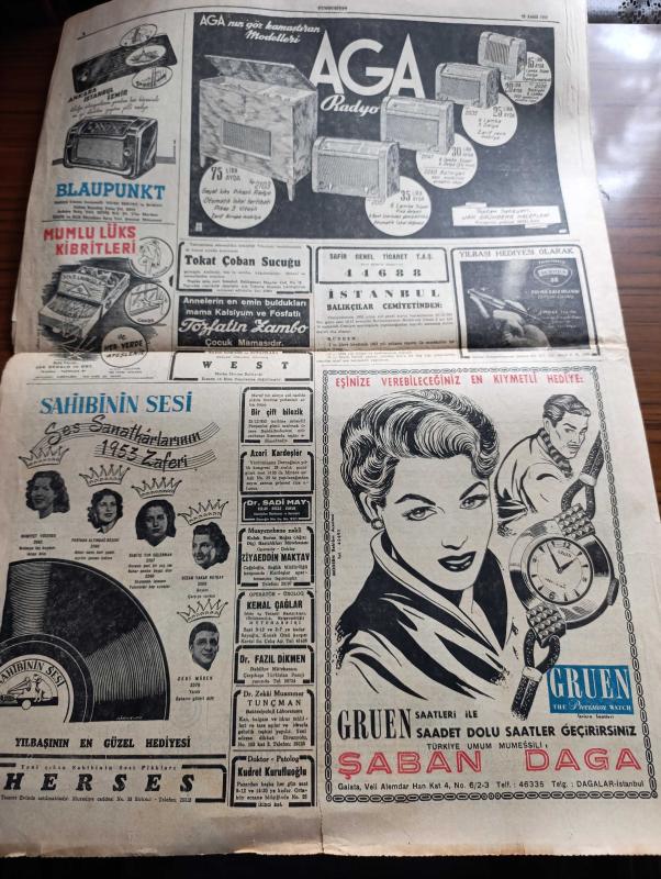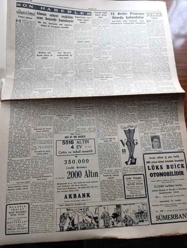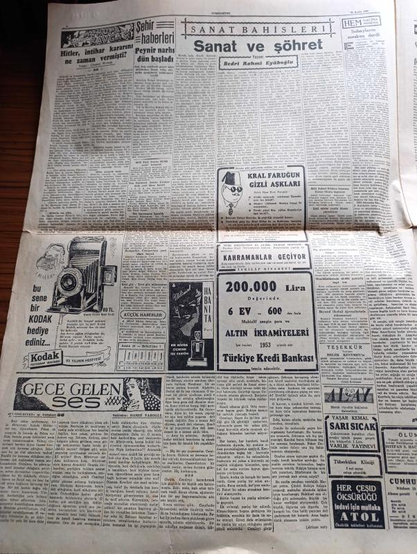 Cumhuriyet Gazetesi - 25 Aralık 1952 - Eski Anayasa Metni Dün Kabul Olundu - Türkiye Yugoslavya İşbirliği Gelişiyor - Amerikan Başkanı Truman'ın Son Noel Mesajı - Yeni Amerikan Başkanı Eisenhover'in Kore Sulh Planı - Beyoğlu Devrim Ocağı Dün Törenle Açıldı fotoğraf - Malatya Hadisesi İle İlgili Yeni Tevkifler - İki Büyük Doğucu Bugün Malatya'ya gönderiliyor -İstanbul Polisinde Yapılan Yenilikler - Emniyet Müdürü Ahmet Tekelioğlu yazarımızda görüşürken fotoğraf - Bedri Rahmi Eyüboğlu Sanat Bahisleri - Hitler İntihar Kararını Ne Zaman Vermişti - Kodak Fotoğraf Makinesi - Çamlıca Kız Lisesi Şampiyon Oldu - Taksim Sineması - Geliri Atatürk Heykeline Harcanacak Atatürk Kupası - İngiliz Edebiyatının Kör Dahisi John Milton - Gripin - Çapamarka - Titanik Vapurunun İkinci Kaptanı Yeni Öldü - Günün Resimleri - AGA Radyo - Hamiyet Yüceses Perihan Altındağ Sözeri Sabite Tur Gülerman Zeki Müren plakları sahibinin sesinde - Alaaddin'in lambası filmi Kemal film tamamen renkli - Tokat çoban sucuğu adlı eser, Kitap > Süreli Yayınlar > Gazeteler > Türkiye > Genel > Günlük kategorisinde İkinci El olarak satıştadır.