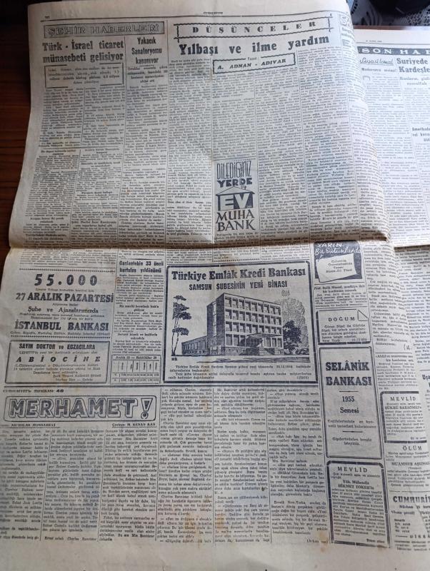 Cumhuriyet Gazetesi - 25 Aralık 1954 - Almanlarla İktisadi Anlaşma Cumhuriyet Başmakale - Fransız Meclisi Alman Silahlanmasını Reddetti - Celal Bayar Üçüncü Ordu Birlikleri Teftiş Etti Fotoğraf - Paris Antlaşmalarının İmzalandığı Gün Fransız Ve Alman Başbakanları Elele Fotoğraf - Atatürk'ün Kızkardeşi Makbule Atadan Hazine Aleyhine Dava Açtı - Bugün Noel- Zeki Müren Cahide Sonkudan 32.000 Lira Tazminat İstiyor - Başvekil Adnan Menderes Bugün İstanbul'da - Kiralar Hakkındaki Yeni Kanun Dün Çıktı - Türk İsrail Ticaret Münasebeti Gelişiyor - Yakacık Sanatoryumu Kapanıyor - Suriye'de Müslüman Kardeşlerin Faaliyeti - Haydarpaşa Limanının İnşaatı İlerliyor - Bizde Zamanın Kıymeti Yazan Burhan Felek - Fenerbahçe Bugün Beykozla Karşılaşıyor - Şeref Stadında Adalet Kasımpaşa Maçı - Demir Maske Filmi Çemberlitaş Sinemasında - Zoraki Diplomat Yazan Yakup Kadri Karaosmanoğlu Yazı Dizisi - Sahte Kahraman Lawrence Derleyen Samih Sami Yazı Dizisi - Tarihe Geçmiş Büyük Aşklar Tristan Ve İzolda, Yunus Nadi tarafından kaleme alınmıştır. Cumhuriyet Gazetesi - 25 Aralık 1954 - Almanlarla İktisadi Anlaşma Cumhuriyet Başmakale - Fransız Meclisi Alman Silahlanmasını Reddetti - Celal Bayar Üçüncü Ordu Birlikleri Teftiş Etti Fotoğraf - Paris Antlaşmalarının İmzalandığı Gün Fransız Ve Alman Başbakanları Elele Fotoğraf - Atatürk'ün Kızkardeşi Makbule Atadan Hazine Aleyhine Dava Açtı - Bugün Noel- Zeki Müren Cahide Sonkudan 32.000 Lira Tazminat İstiyor - Başvekil Adnan Menderes Bugün İstanbul'da - Kiralar Hakkındaki Yeni Kanun Dün Çıktı - Türk İsrail Ticaret Münasebeti Gelişiyor - Yakacık Sanatoryumu Kapanıyor - Suriye'de Müslüman Kardeşlerin Faaliyeti - Haydarpaşa Limanının İnşaatı İlerliyor - Bizde Zamanın Kıymeti Yazan Burhan Felek - Fenerbahçe Bugün Beykozla Karşılaşıyor - Şeref Stadında Adalet Kasımpaşa Maçı - Demir Maske Filmi Çemberlitaş Sinemasında - Zoraki Diplomat Yazan Yakup Kadri Karaosmanoğlu Yazı Dizisi - Sahte Kahraman Lawrence Derleyen Samih Sami Yazı Dizisi - Tarihe Geçmiş Büyük Aşklar Tristan Ve İzolda adlı eser Türkçe dilindedir.