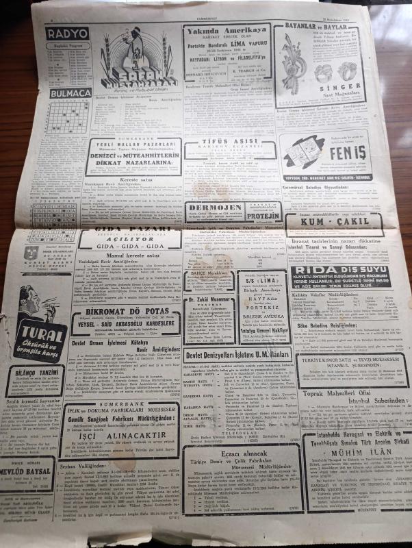 Cumhuriyet Gazetesi - 25 Birincikanun (Aralık) 1944 - İstiklal Savaşımızın Tarihi Yazan Abidin Daver Köşe Yazısı - Peştedeki Alman Garnizonu Sarıldı - Milli Şefimiz İsmet İnönü Dün Yarışlarına Teşrif Ettiler - İngiliz Habeş Anlaşması - Merhum M. Turhan Tan'ın Ölüm Yıldönümü Fotoğraf - Galatasaray Fenerbahçe Dün 2 2 Berabere Kaldı Fotoğraf - Yeşilayın Yirmi Beşinci Yıldönümü - Atina Asilerden Tamamiyle Temizlendi - Ses Tiyatrosu Opereti Gala Gecesi Tatlı Sert - Ömer Besim - Boks Maçları Finali - Lido Yüzme İhtisas Kulübü - Ankara Kır Koşusunu İstanbul Takımı Kazandı - Kooperatifçilik Kongresi Kapanırken Yazan Profesör Ziyaeddin Fahri Fındıkoğlu - Kapıdan Bir Kadın Girdi Yazan Warwick Deeping Yazı Dizisi - Mezarlıklarımıza Dair Yazan Burhan Felek Köşe Yazısı - Noel Mesajları - Bugünkü Radyo Programı - Singer Saat Mağazaları - Yakında Amerika'ya Hareket Edecek Olan Portekiz Bandıralı Lima Vapuru - İstanbul Belediyesi Şehir Tiyatroları Düğün Gecesi Oyunu Bu Akşam - Fen İş adlı eser, Kitap > Süreli Yayınlar > Gazeteler > Türkiye > Genel > Günlük kategorisinde İkinci El olarak satıştadır.