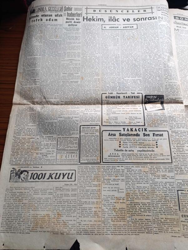 Cumhuriyet Gazetesi - 25 Eylül 1954 - Doğu İllerimizi Karadenize Bağlayan Yeni Kara Yolları - Tıp Kongresi - Cumhurreisi Celal Bayar'ı Aydın'a NATO Komutanı Uğurladı Fotoğraf - Radyo İle Sevkedilen Mermiler - Tren Yolcu Tarifelerine Yüzde 25 Zam Yapıldı - Talebeler Siyasetle Uğraşmalı Mı - Kıbrıs Davası Genel Kurul Gündemine Alındı - 1001 Kuyu Yazan Va Nü Yazı Dizisi - Londra Geceleri Yazan Robert Fabian Yazı Dizisi - Migros Kamyonlarına İki Buzdolabı Konulacak - Müslüman Kardeşler Cemiyeti Albay Nasr İle Mücadeleye Devam Ediyor - İngiliz Fizikçisi John Bernal'a Stalin Mükafatı - İş Ciddileşti Yazan Burhan Felek Köşe Yazısı - Türkiye Yelken Şampiyonası - Sabite Tur Gülerman Beyaz Park'ta - Bugünkü Radyo Programı - Bahçeden Bir Adam Girdi Yazan Perihan Zorlu Yazı Dizisi - Resimli Roman Yeşil Saksı Yazan George Simenon - Mayfer Revüsü Tepebaşı Cumhuriyet Pavyon Ve Lokantasında adlı eser, Kitap > Süreli Yayınlar > Gazeteler > Türkiye > Genel > Günlük kategorisinde İkinci El olarak satıştadır.