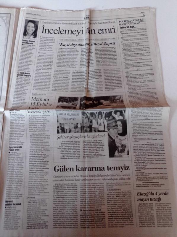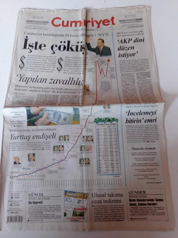 Cumhuriyet Gazetesi -25 Haziran 2006 - Aziz Yıldırım - İşte Ekonomik Çöküş- Recep Tayyip Erdoğan - AKP Dini Düzen İstiyor - Cüneyt Zapsu Yasin El Kadı İlişkisi - Ulusal Takıma Ceza İndirimi - Şiilerden Dünya Konseyi - Almanya Ve Arjantin Kazandı - Süleyman Demirel - Bülent Ecevit - 2001 Krizi adlı eser Türkçe dilindedir.