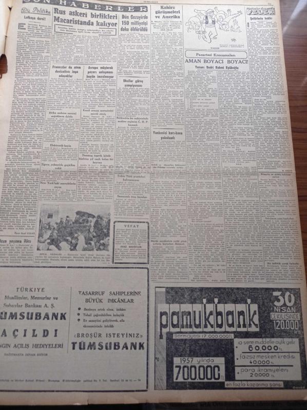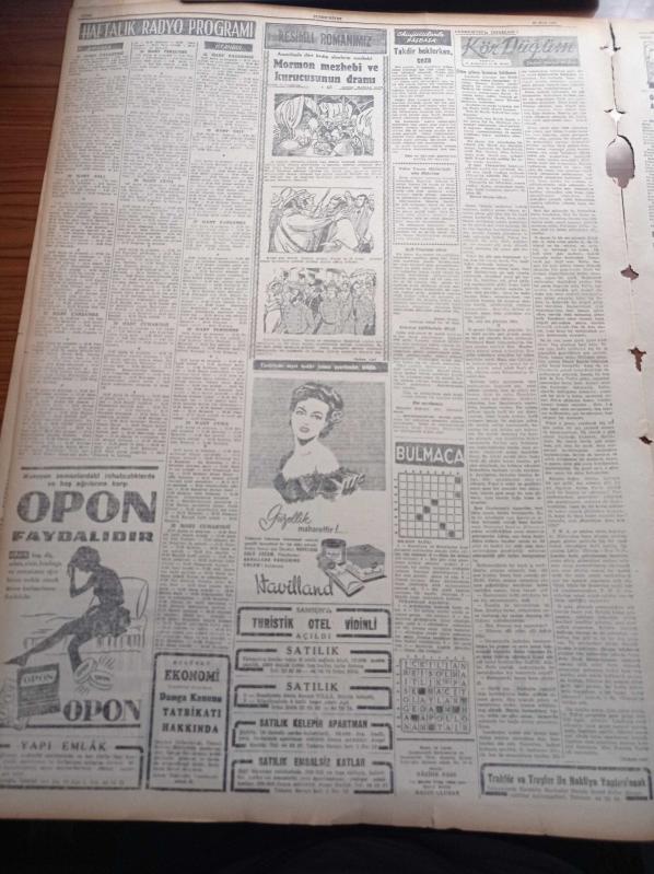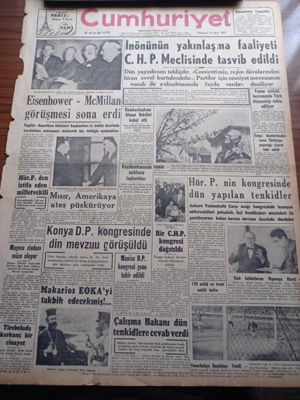 Cumhuriyet Gazetesi - 25 Mart 1957 - İsmet İnönü'nün Yakınlaşma Faaliyeti CHP Meclisi'nde Tasvib Edildi - Eisenhower McMillan Görüşmesi Sona Erdi - Mısır Amerika'ya Ateş Püskürüyor - Magosa Zindanı Müze Oluyor - Yunan İstiklal Bayramı'nda Türk Düşmanlığı Telkin Ediliyor - Makarios EOKA'yı Takbih Edecekmiş - Aydemir Balkan - İdam Sehpasında Can Veren Devletliler Yazı Dizisi - Kırkıncı Oda Yazan Peride Celal Yazı Dizisi - Ramazanda 5 Büyük Camide Mahya Kurulacak - Dün Cezayirde 150 Milliyetçi Daha Öldürüldü - Burhan Felek - Elektronik Beyin - Haftalık Radyo Programı - Resimli Romanımız Mormon Mezhebi Ve Kurucusunun Dramı - Opon Ağrı Kesici - Havilland Krem - Fenerbahçe Beşiktaş'ı 4 2 Yendi - Profesyonel Ligin Puan Vaziyeti - Voleybolda Galatasaray Türkiye Şampiyonu Oldu - Ekrem Koçak Türkiye Kros Birincisi Oldu - Lefter Küçükandonyadis - Komili Banyo Sabunu - Vita Yağ - Türkiye Kayak Şampiyonası, Yunus Nadi tarafından kaleme alınmıştır. Cumhuriyet Gazetesi - 25 Mart 1957 - İsmet İnönü'nün Yakınlaşma Faaliyeti CHP Meclisi'nde Tasvib Edildi - Eisenhower McMillan Görüşmesi Sona Erdi - Mısır Amerika'ya Ateş Püskürüyor - Magosa Zindanı Müze Oluyor - Yunan İstiklal Bayramı'nda Türk Düşmanlığı Telkin Ediliyor - Makarios EOKA'yı Takbih Edecekmiş - Aydemir Balkan - İdam Sehpasında Can Veren Devletliler Yazı Dizisi - Kırkıncı Oda Yazan Peride Celal Yazı Dizisi - Ramazanda 5 Büyük Camide Mahya Kurulacak - Dün Cezayirde 150 Milliyetçi Daha Öldürüldü - Burhan Felek - Elektronik Beyin - Haftalık Radyo Programı - Resimli Romanımız Mormon Mezhebi Ve Kurucusunun Dramı - Opon Ağrı Kesici - Havilland Krem - Fenerbahçe Beşiktaş'ı 4 2 Yendi - Profesyonel Ligin Puan Vaziyeti - Voleybolda Galatasaray Türkiye Şampiyonu Oldu - Ekrem Koçak Türkiye Kros Birincisi Oldu - Lefter Küçükandonyadis - Komili Banyo Sabunu - Vita Yağ - Türkiye Kayak Şampiyonası adlı eser Türkçe dilindedir.