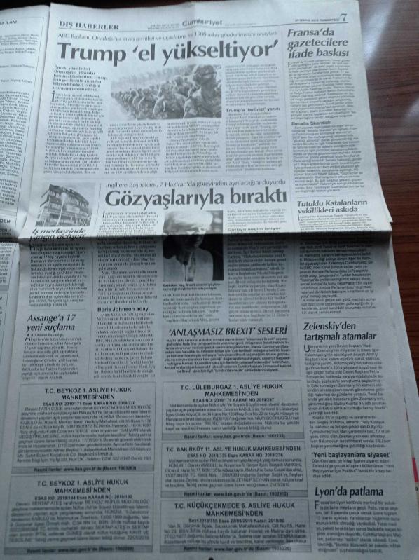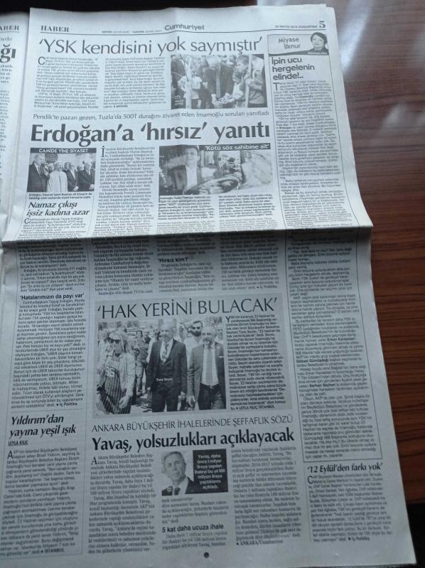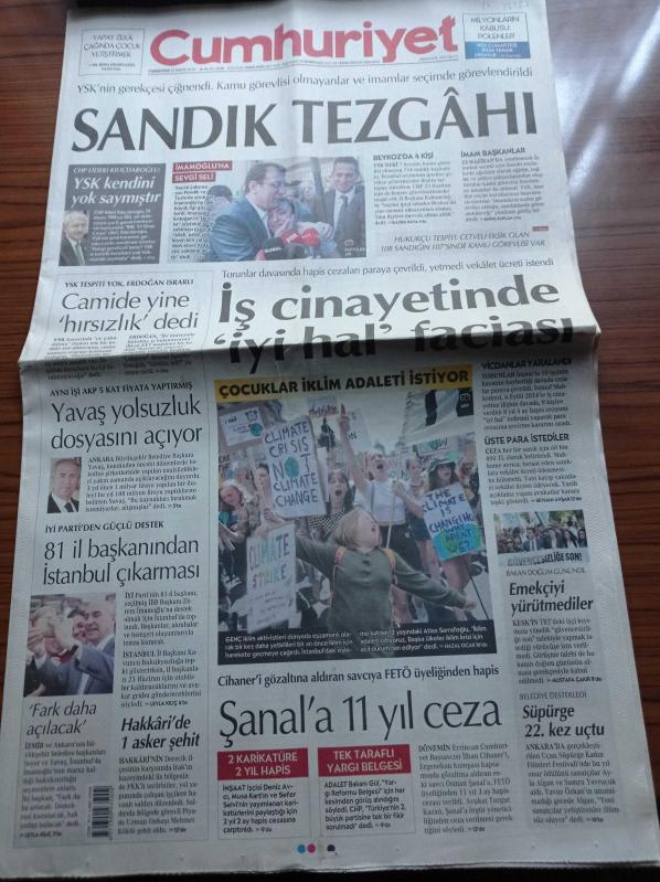 Cumhuriyet Gazetesi - 25 Mayıs 2019 - Fenerbahçe'ye UEFA'dan Kötü Haber - Uçan Süpürge Ödülleri Duayen Kadınların Oldu - Yönetmen Ve Senarist Yavuz Özkan Son Yolculuğuna Uğurlandı - YSK'nin Gerekçesi Çiğnendi - Sandık Tezgahı - CHP Lideri Kemal Kılıçdaroğlu YSK Kendini Yok Saymıştır - Ekrem İmamoğlu'na Sevgi Seli - Recep Tayyip Erdoğan İstanbul Seçimi İçin Camide Hırsızlık Dedi - Mansur Yavaş Yolsuzluk Dosyasını Açıyor - Osman Şanal'a 11 Yıl Ceza adlı eser Türkçe dilindedir.