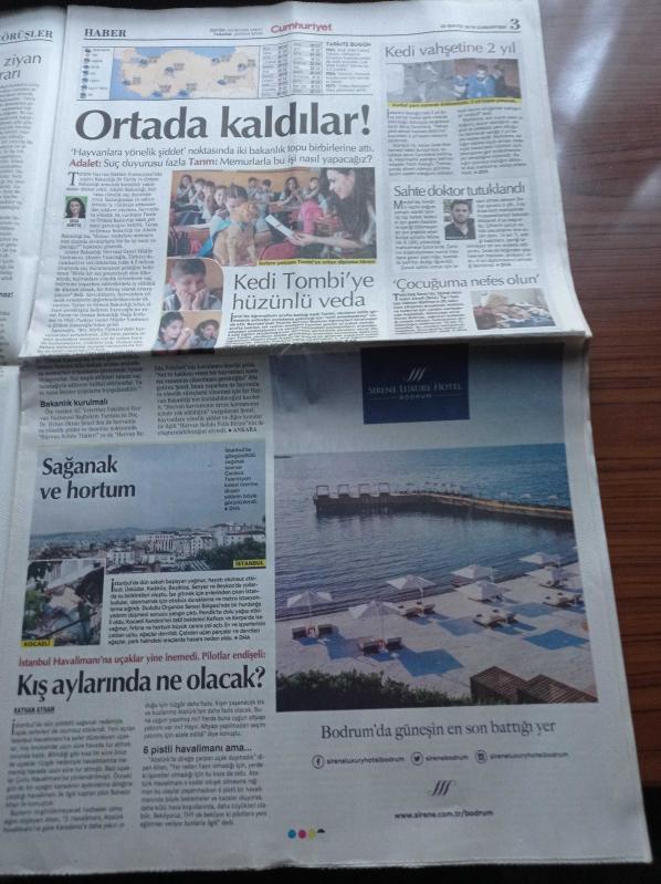 Sayfa Boyutu: 38*56cm Sayfa Sayısı:16 Cumhuriyet Gazetesi Yıpranma, sararmalar, kupon kesiği ve yırtılmalar zamana bağlı olarak görülebilir
