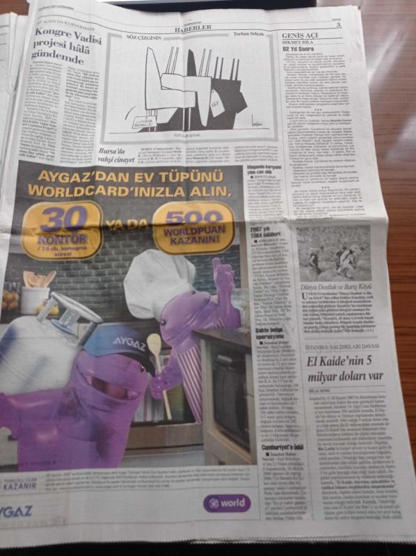 Cumhuriyet Gazetesi - 25 Nisan 2007 - Recep Tayyip Erdoğan Daha Önce Laik Sistemi Hedef Alan ve Eşi Türbanlı Olan Abdullah Gül'ü Köşk'e Çıkarma Kararı Aldı - Çankaya Ve Türban İkilemi - Hayrünnisa Gül - Yaşar Büyükanıt - Kutlu Doğum Karmaşası - Beşiktaş Fenerbahçe Derbisi - Zirve Yayıncılık Katliamı - Güler Sabancı adlı eser, Kitap > Süreli Yayınlar > Gazeteler kategorisinde İkinci El olarak satıştadır.