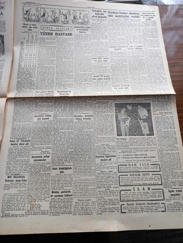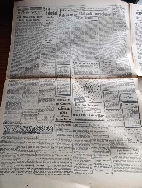 Cumhuriyet Gazetesi - 25 Temmuz 1956 - Kıbrıs Davasında Türk Hukuku En Eskidir Ve Kıymeti Haizdir - Erivandan Kurtulmak İsteyen Ermeniler - İsmet İnönü Taşlıktaki Evinde Kıbrıs Hakkında Konuşurken Fotoğraf - Başbakan Adnan Menderes Afganistana Hareket Etti - Lozan Muahedesinin 33. Yıldönümü - Binicilerimizin Londra'da Kazandıkları Başarılar - Binicilik Ekibi Kaptanı Binbaşı Salih Koç Fotoğraf - Gülhane Parkında Yapılan Ev Kedi ve Köpekleri Arasında Müsabaka - Beynelmilel Yelken Müsabakaları - İki Devrin Perde Arkası Yazan Samih Nafiz Tansu Yazı Dizisi - Karanlıkta Sesler Yazan Perihan Zorlu Yazı Dizisi - Mussolini'nin Çocuklarına Maaş Bağlanıyor -Yeni Araba Vapurları - Borsa - Adalar Güzeli Ve Film Yıldızı Ayten Çankaya Puro Tuvalet Sabunu Kullanıyorum Diyor - Karacaoğlan Yazan Yaşar Kemal Resimleyen Münif Fehim Yazı Dizisi - Resimli Romanımız Kraliçenin Gerdanlığı Yazan Pierre Gordeaux - Tenisçi Nazmi Bari Fotoğraf - Futbol Hakem Mektebi Açılıyor - Novi Belgrad Voleybol Takımı adlı eser, Kitap > Süreli Yayınlar > Gazeteler > Türkiye > Genel > Günlük kategorisinde İkinci El olarak satıştadır.