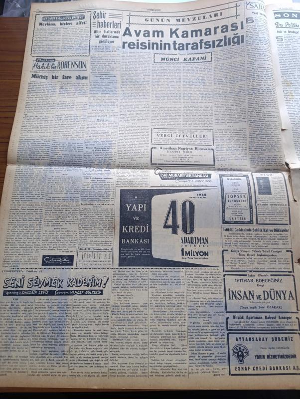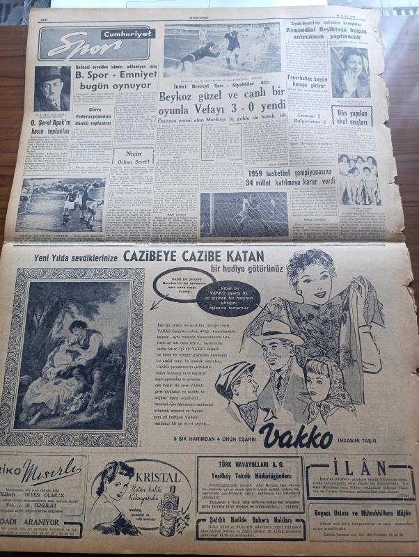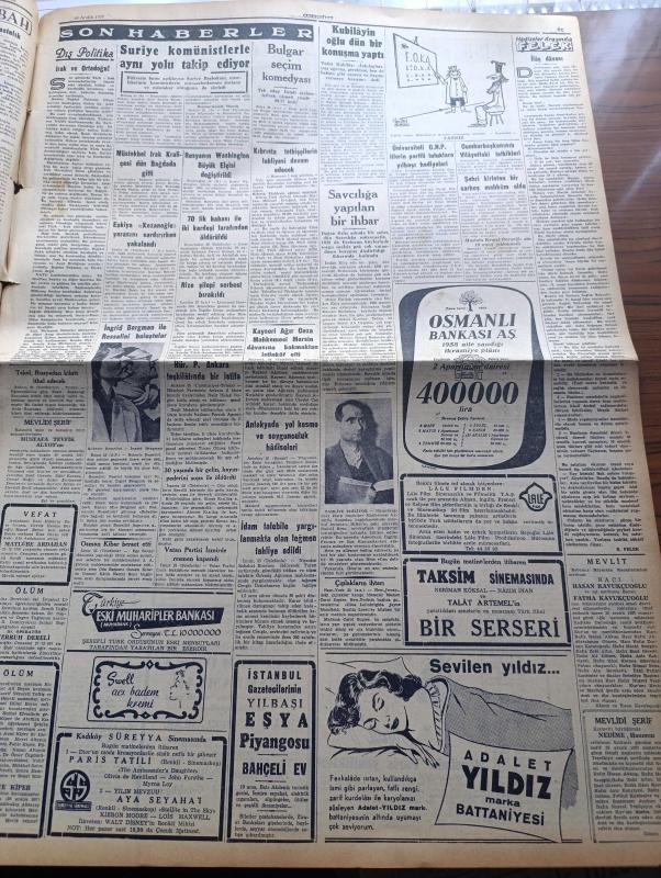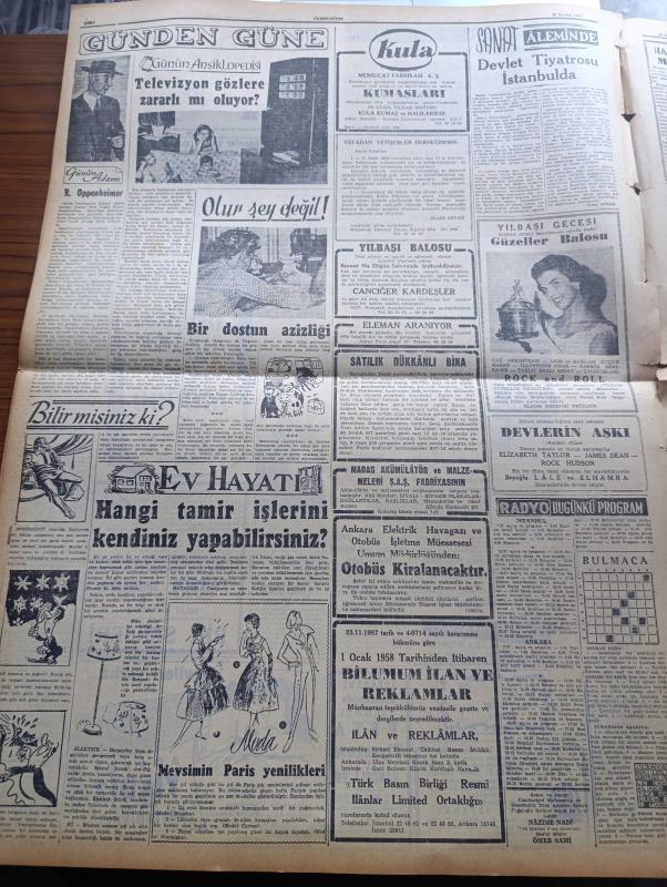 Cumhuriyet Gazetesi - 26 Aralık 1957 - Meclis İç Tüzük Tadilatını Müzakere Etti - Faik Ahmet Barutçu - Sebati Ataman - Behçet Kayaalp - Kıbrıs'ta Tedhişçilerin Tahliyesi Devam Edecek - Diyanet İşleri Reisine Makam Arabası Alınacak - Yılbaşı Hazırlıkları İlerliyor - Gaziantep'in 36. Kurtuluş Yıldönümü - Seni Sevmek Kaderim Yazan Sinclair Levis Yazı Dizisi - 20. Asırda Hakiki Bir Robenson - Avam Kamarası Reisinin Tarafsızlığı Yazan Münci Kapani - Ingrid Bergman İle Roberto Rosselini Buluştular - Suriye Komünistlerle Aynı Yolu Takip Ediyor - Vatan Partisi İzmir'de Resmen Kapandı - Burhan Felek - Yılbaşı Gecesi Güzeller Balosu - Günün Ansiklopedisi - Devlet Tiyatrosu İstanbul'da - Rock And Roll - Türkiye Lüksemburg Ordu Maçının Tarihi Değişti - Pe Re Ja Limon Kolonyası - Beyoğluspor Emniyet Bugün Oynuyor - Fenerbahçe Bugün Kampa Giriyor - Remondini Beşiktaş'ın Antrenörü Oldu - 1959 Basketbol Şampiyonasına 34 Millet Katılmaya Karar Verdi - Vakko - Kristal Kolonyası - Niçin Orhan Şeref Apak adlı eser, Kitap > Süreli Yayınlar > Gazeteler > Türkiye > Genel > Günlük kategorisinde İkinci El olarak satıştadır.