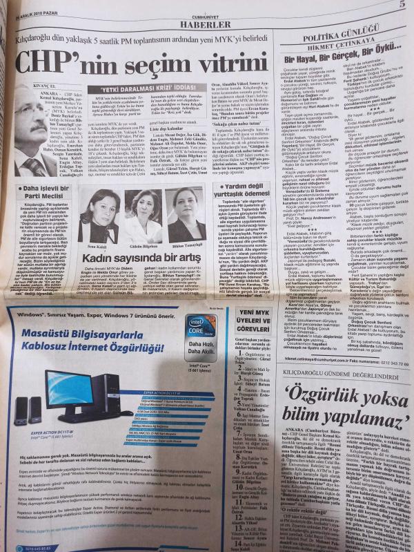 Cumhuriyet Gazetesi - 26 Aralık 2010 - Kemal Kılıçdaroğlu - Bekir Coşkun - Gülsün Bilgehan - Sena Kaleli - Bihlun Tamaylıgil - Turgut Özal - Ahmet Davutoğlu - Şemsi Kopuz - Alper Maral -, Cumhuriyet Yayınları tarafından kaleme alınmıştır. Cumhuriyet Gazetesi - 26 Aralık 2010 - Kemal Kılıçdaroğlu - Bekir Coşkun - Gülsün Bilgehan - Sena Kaleli - Bihlun Tamaylıgil - Turgut Özal - Ahmet Davutoğlu - Şemsi Kopuz - Alper Maral - adlı eser Türkçe dilindedir.