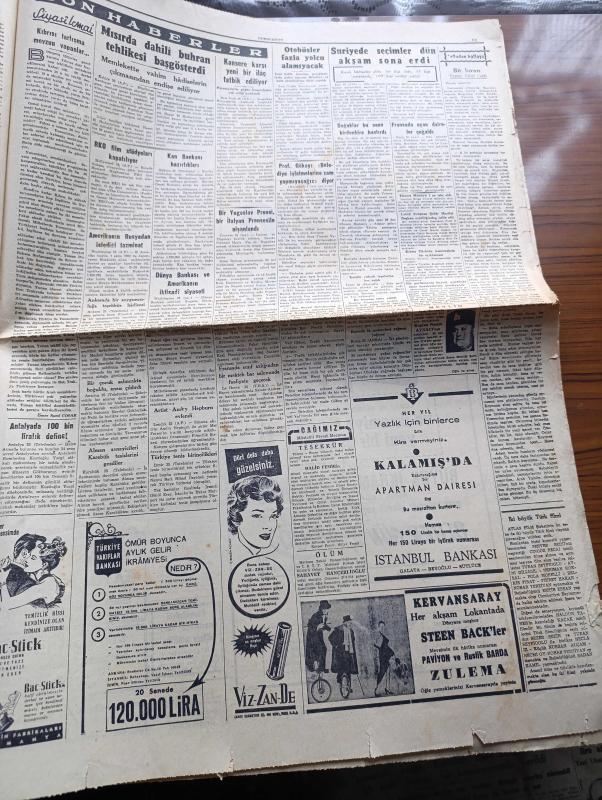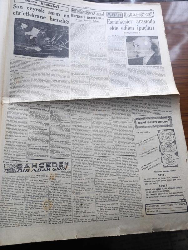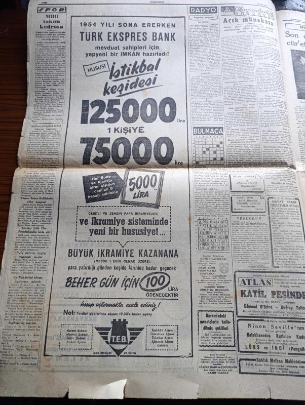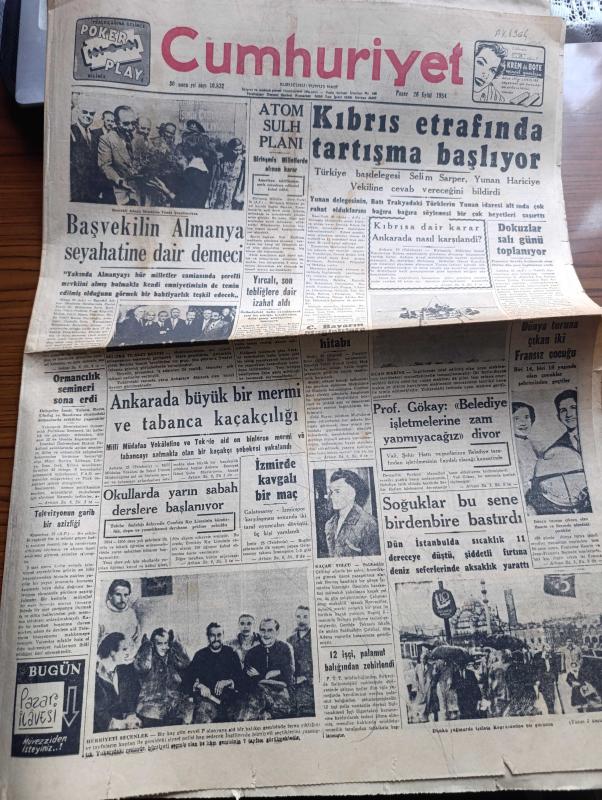 Cumhuriyet Gazetesi - 26 Eylül 1954 - Başvekil Adnan Menderes'in Almanya Seyahatine Dair Demeci - Atom Sulh Planı - Kıbrıs Etrafında Tartışma Başlıyor - Sıtkı Yırcalı Son Tebliğlere Dair İzahat Aldı - Profesör Fahrettin Kerim Gökay Belediye İşletmelerine Zam Yapmayacağız Diyor - 1001 Kuyu Yazan Va Nü Yazı Dizisi - Londra Geceleri Yazan Robert Fabian Yazı Dizisi - Yarışmaya Alışma Yazan Hasan Ali Yücel Köşe Yazısı - RKO Film Stüdyoları Kapatılıyor - Kan Bankası Hazırlıkları - Artist Audrey Hepburn Evlendi - Fransa'da Uçan Daireler Çoğaldı - Milli Takım Kadrosu - Naci Erdem - Ali İhsan Karayiğit - Turgay Şeren - Lefter Küçükandonyadis - Kürekçi Edin Öke Fenerbahçe'den İstifa Etti - Bahçeden Bir Adam Girdi Yazan Perihan Zorlu Yazı Dizisi - Montesi Hadisesinin İçyüzü Yazan Hami S. Yazı Dizisi - İskandinavya Notları Yazan Aydemir Balkan Yazı Dizisi - Resimli Romanımız Yeşil Saksı Yazan George Simenon - Günün Resimleri - Nebabiş Trençkot adlı eser, Kitap > Süreli Yayınlar > Gazeteler > Türkiye > Genel > Günlük kategorisinde İkinci El olarak satıştadır.