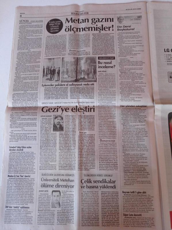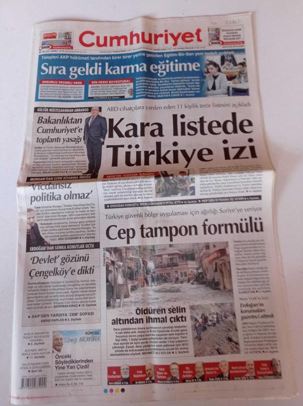Cumhuriyet Gazetesi - 26 Eylül 2014 - UEFA Bizi Gözetliyor - Tuncel Kurtiz Anılıyor - Hadrian Tapınağı Eritip Yol Yapmışlar - Hitler'in Soyunu Kurutma Planı - Devlet Gözünü Çengelköy'e Dikti - Sıra Geldi Karma Eğitme - Kültür Müşteşarından Ambargo adlı eser Türkçe dilindedir.