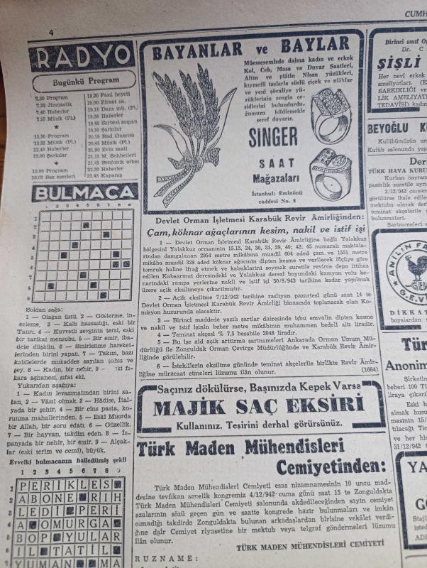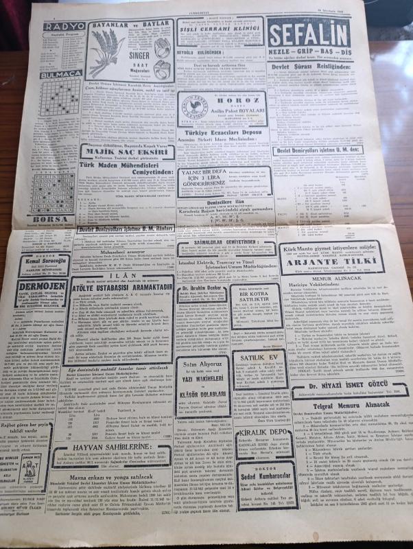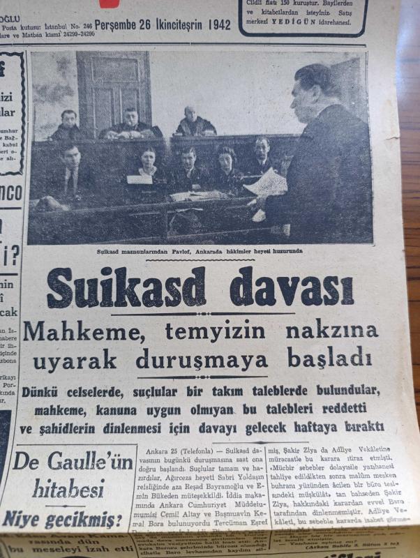 Cumhuriyet Gazetesi - 26 İkinciteşrin (Kasım) 1942 - Harp Sonrası Yazan Nadir Nadi Köşe Yazısı - Rus Taarruzu İnkişaf Ediyor - Suikast Davası - Suikast Maznunlarından Sağlığı Ankara'da Hakimler Heyeti Huzurunda Fotoğraf - Emin Büke - General Franco Lizbon'a Gidecek Mi - Güzel Edirne'nin Kurtuluşu Fotoğraf - Sovyet İlerleyişi Devam Ediyor - General De Gaulle'ün Hitabesi - Kredi Kooperatifleri Kuvvetlendiriliyor - Yeni Mebus Seçimi - Yıkılan Saadet Şark Sinemasında - Kanlı Saltanat Bu Akşam Lale Sinemasında - Beynelmilel Portreler Mareşal Smuts Cenubi Afrika Birliği Başvekili - Küçük Hikaye Son Hatıra Nakleden Hamdi Varoğlu - En Güzel Türk Filmi Sürtük Elhamra'da - Profesör Kerim Sebatinin Cenazesi Bugün Getiriliyor - Biraz Suples Lazım Yazan Burhan Felek Köşe Yazısı - Nezle Grip Baş Ve Diş Ağrısına Sefalin - Bugünkü Radyo Programı - Singer Saat Mağazaları - Dermojen Yanık kremi - Horoz Marka Abimin Paket Boyaları, Yunus Nadi tarafından kaleme alınmıştır. Cumhuriyet Gazetesi - 26 İkinciteşrin (Kasım) 1942 - Harp Sonrası Yazan Nadir Nadi Köşe Yazısı - Rus Taarruzu İnkişaf Ediyor - Suikast Davası - Suikast Maznunlarından Sağlığı Ankara'da Hakimler Heyeti Huzurunda Fotoğraf - Emin Büke - General Franco Lizbon'a Gidecek Mi - Güzel Edirne'nin Kurtuluşu Fotoğraf - Sovyet İlerleyişi Devam Ediyor - General De Gaulle'ün Hitabesi - Kredi Kooperatifleri Kuvvetlendiriliyor - Yeni Mebus Seçimi - Yıkılan Saadet Şark Sinemasında - Kanlı Saltanat Bu Akşam Lale Sinemasında - Beynelmilel Portreler Mareşal Smuts Cenubi Afrika Birliği Başvekili - Küçük Hikaye Son Hatıra Nakleden Hamdi Varoğlu - En Güzel Türk Filmi Sürtük Elhamra'da - Profesör Kerim Sebatinin Cenazesi Bugün Getiriliyor - Biraz Suples Lazım Yazan Burhan Felek Köşe Yazısı - Nezle Grip Baş Ve Diş Ağrısına Sefalin - Bugünkü Radyo Programı - Singer Saat Mağazaları - Dermojen Yanık kremi - Horoz Marka Abimin Paket Boyaları adlı eser Türkçe dilindedir.