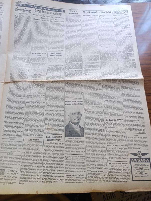 Cumhuriyet Gazetesi - 26 İkinciteşrin (Kasım) 1942 - Harp Sonrası Yazan Nadir Nadi Köşe Yazısı - Rus Taarruzu İnkişaf Ediyor - Suikast Davası - Suikast Maznunlarından Sağlığı Ankara'da Hakimler Heyeti Huzurunda Fotoğraf - Emin Büke - General Franco Lizbon'a Gidecek Mi - Güzel Edirne'nin Kurtuluşu Fotoğraf - Sovyet İlerleyişi Devam Ediyor - General De Gaulle'ün Hitabesi - Kredi Kooperatifleri Kuvvetlendiriliyor - Yeni Mebus Seçimi - Yıkılan Saadet Şark Sinemasında - Kanlı Saltanat Bu Akşam Lale Sinemasında - Beynelmilel Portreler Mareşal Smuts Cenubi Afrika Birliği Başvekili - Küçük Hikaye Son Hatıra Nakleden Hamdi Varoğlu - En Güzel Türk Filmi Sürtük Elhamra'da - Profesör Kerim Sebatinin Cenazesi Bugün Getiriliyor - Biraz Suples Lazım Yazan Burhan Felek Köşe Yazısı - Nezle Grip Baş Ve Diş Ağrısına Sefalin - Bugünkü Radyo Programı - Singer Saat Mağazaları - Dermojen Yanık kremi - Horoz Marka Abimin Paket Boyaları adlı eser, Kitap > Süreli Yayınlar > Gazeteler > Türkiye > Genel > Günlük kategorisinde İkinci El olarak satıştadır.