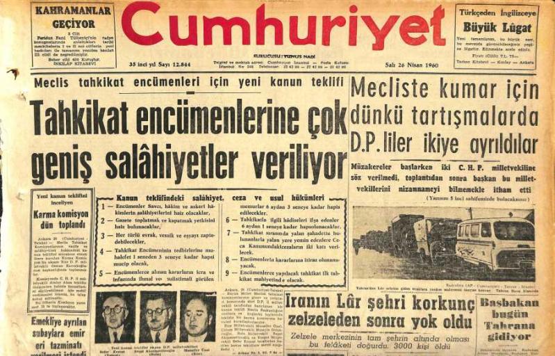 Cumhuriyet Gazetesi 26 Nisan 1960 - İranın Lâr Şehri Korkunç Zelzeleden Sonra Yok Oldu - Galatasaray Bugün Avrupaya Gidiyor GZ120041, en son 19 gün önce güncellenmiştir.