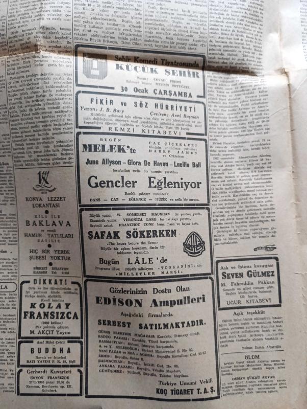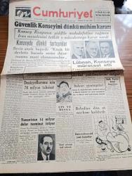 Cumhuriyet Gazetesi - 26 Ocak 1946 - Komisyon Kurunuz Yazan Nadir Nadi Başmakale - Güvenlik Konseyinin Dünkü Mühim Kararı - Konsey Rusya'nın Şiddetle Muhalefetine Rağmen İran Meselesini Tetkik Ve Müzakereye Karar Verdi - Konseyde Dünkü Tartışmalar - Bevin Şöyle Bağırdı Küçük Bir Devletin Sesini Duyurmasına Mani Olmamak Lazım - Lübnan Konseye Müracaat Etti - Lübnan Fransız Ve İngiliz Kuvvetlerinin Topraklarından Çekilmesini İstiyor - Madam Çan Kay Şek 10 Rus Generaline Nişanlar Verirken Bir Nutuk Söyledi - İtalyan Sömürgeleri - Belediye Dün Et Narkını Söyledi - Yunanistan 14 Milyar Dolar Tazminat İstiyor - Amerikalı Gözüyle Bugünkü Türkiye Yazan Summer Welles - Şehir Tiyatrosunda Küçük Şehir Sahneye Koyan Muhsin Ertuğrul - Sirkeci Konya Lezzet Lokantası - Miskinler Tekkesi Yazan Reşat Nuri Güntekin Yazı Dizisi - Kızıl Saçlı Kadın Bugün Elhamra Sinemasında - Cemal Tollu Sergisi Ve Bursa - Şevket Yolcular Bedia Zeynep Garden Barda - Bugünkü Radyo Programı - Bulmaca - Borsa adlı eser, Kitap > Süreli Yayınlar > Gazeteler > Türkiye > Genel > Günlük kategorisinde İkinci El olarak satıştadır.