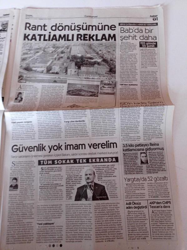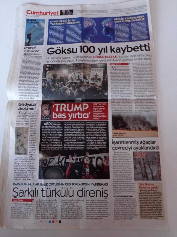 Cumhuriyet Gazetesi - 26 Ocak 2017 - Arda Turan - Anadolu Efes - Göksu 100 Yıl Kaybetti - Trump Baş Yırtıcı - Gladyatör Okulu Mu - Everest Küçülüyor - Hayata Dönüş Katliamı - Uğur Mumcu Anılıyor - El Bab'ta Çatışma 1 Şehit 5 Yaralı - CHP Sözcüsü Selin Sayek Böke - Ahmet Türk - Referandum Hazırlığı - Kadri Gürsel adlı eser Türkçe dilindedir.