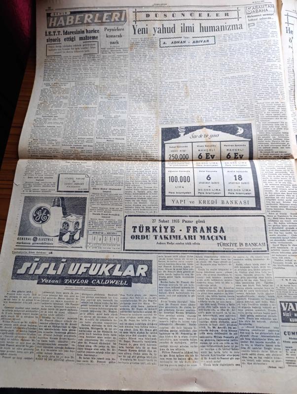 Cumhuriyet Gazetesi - 26 Şubat 1955 - Başvekil Adnan Menderes Dün Bağdat'tan Geri Döndü - Başvekil Adnan Menderes Bağdat Havaalanında Nuri Said Paşa İle Birlikte Fotoğraf - 2,5 ve 5 Liralıklar Metal Oluyor - Fransa Ordu Takımı İle Maç Yapacağız - Yeni 100 Hastane Asistanı İçin Mecliste Dünkü Tartışmalar - Fantezi Kravatlı Sahte Şubat Mehmet Kuloğlu - 8000 Beyin Ameliyatı Yapan Cerrah Herbert Oliver İstanbul'da - Sisli Ufuklar Yazan Taylor Caldwell Yazı Dizisi - Önümüzdeki 5 Yıl Harp Olmayacak - Hacıbeyzade Yazan Burhan Felek Köşe Yazısı - Fenerbahçe Hacettepeyi 6 3 Yendi - İstanbul Venedik Kılıç Müsabakaları - Bir Bekarın Sevgilileri Yazan Maurice Dekobra Yazı Dizisi - İstanbul Belediyesi Şehir Tiyatroları Dram Kısmında Altıncı Kat Oyunu - Günün Resimleri - Resimli Roman Gangsterler Yatağı Yazan George Simenon - Günün Resimleri - Shell - Gözen Kremleri - Facta Hesap Makinesi, Yunus Nadi tarafından kaleme alınmıştır. Cumhuriyet Gazetesi - 26 Şubat 1955 - Başvekil Adnan Menderes Dün Bağdat'tan Geri Döndü - Başvekil Adnan Menderes Bağdat Havaalanında Nuri Said Paşa İle Birlikte Fotoğraf - 2,5 ve 5 Liralıklar Metal Oluyor - Fransa Ordu Takımı İle Maç Yapacağız - Yeni 100 Hastane Asistanı İçin Mecliste Dünkü Tartışmalar - Fantezi Kravatlı Sahte Şubat Mehmet Kuloğlu - 8000 Beyin Ameliyatı Yapan Cerrah Herbert Oliver İstanbul'da - Sisli Ufuklar Yazan Taylor Caldwell Yazı Dizisi - Önümüzdeki 5 Yıl Harp Olmayacak - Hacıbeyzade Yazan Burhan Felek Köşe Yazısı - Fenerbahçe Hacettepeyi 6 3 Yendi - İstanbul Venedik Kılıç Müsabakaları - Bir Bekarın Sevgilileri Yazan Maurice Dekobra Yazı Dizisi - İstanbul Belediyesi Şehir Tiyatroları Dram Kısmında Altıncı Kat Oyunu - Günün Resimleri - Resimli Roman Gangsterler Yatağı Yazan George Simenon - Günün Resimleri - Shell - Gözen Kremleri - Facta Hesap Makinesi adlı eser Türkçe dilindedir.