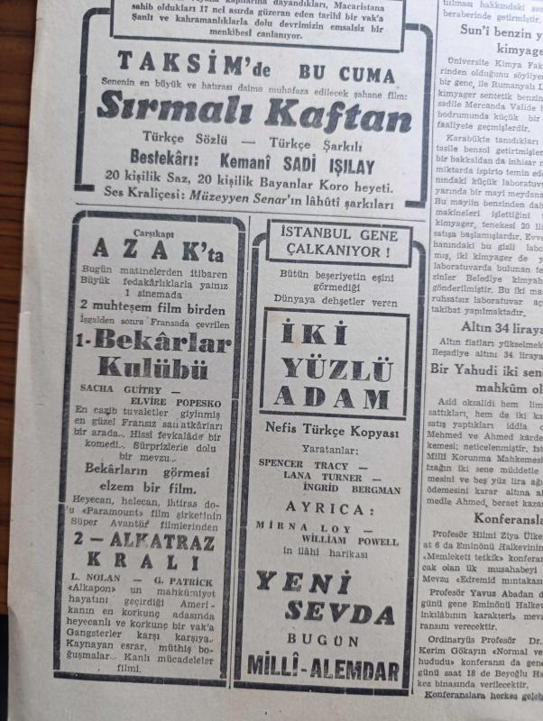 Cumhuriyet Gazetesi - 27 İkincikanun (Ocak) 1943 - hesapta yanlışlar Cumhuriyet Başmakale - Ticaret vekilimiz Doktor Behçet Uz Adana ve Mersin'de tetkikler yapıyor - Roosevelt Churchill buluştular - geçen yaz Churchill'in Moskova'ya yaptığı ziyarette Stalin'le fotoğrafı - Alman harp tebliği cephe hattı düzeltiliyor - Trablus batısında mihver'in en son deniz üssü zuara limanı zaptedildi - Varlık vergisi vermeyenler bu akşamki trenle Aşkale'ye sevk ediliyor - Askeri Vaziyet Yazan Emekli General H. Emir Erkilet Yazı Dizisi - Narvike Baskını - çiçek hastalığına uyuz tedavisi mi yapılmış - bekarlar Kulübü Çarşıkapı Azak'ta - Sürtük filmi Çemberlitaş sinemasında - Milli roman Toros Çocuğu yazan Mehmet Şevki Yazman yazı dizisi - acı bir kayıp yazar arkadaşımız Agah İzzet vefat etti - Türkiye spor ansiklopedisi cumartesi günü çıkıyor - bugünkü radyo programı - Marsilya'da 250'den fazla kişi kurşuna dizilmiş - refah faciası - Almanlar 7 İngiliz botunun baskınını püskürttüklerini söylüyorlar, Yunus Nadi tarafından kaleme alınmıştır. Cumhuriyet Gazetesi - 27 İkincikanun (Ocak) 1943 - hesapta yanlışlar Cumhuriyet Başmakale - Ticaret vekilimiz Doktor Behçet Uz Adana ve Mersin'de tetkikler yapıyor - Roosevelt Churchill buluştular - geçen yaz Churchill'in Moskova'ya yaptığı ziyarette Stalin'le fotoğrafı - Alman harp tebliği cephe hattı düzeltiliyor - Trablus batısında mihver'in en son deniz üssü zuara limanı zaptedildi - Varlık vergisi vermeyenler bu akşamki trenle Aşkale'ye sevk ediliyor - Askeri Vaziyet Yazan Emekli General H. Emir Erkilet Yazı Dizisi - Narvike Baskını - çiçek hastalığına uyuz tedavisi mi yapılmış - bekarlar Kulübü Çarşıkapı Azak'ta - Sürtük filmi Çemberlitaş sinemasında - Milli roman Toros Çocuğu yazan Mehmet Şevki Yazman yazı dizisi - acı bir kayıp yazar arkadaşımız Agah İzzet vefat etti - Türkiye spor ansiklopedisi cumartesi günü çıkıyor - bugünkü radyo programı - Marsilya'da 250'den fazla kişi kurşuna dizilmiş - refah faciası - Almanlar 7 İngiliz botunun baskınını püskürttüklerini söylüyorlar adlı eser Türkçe dilindedir.