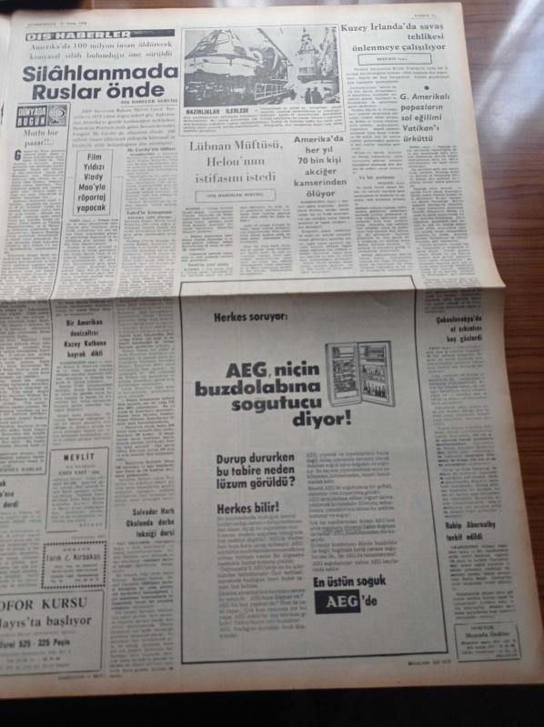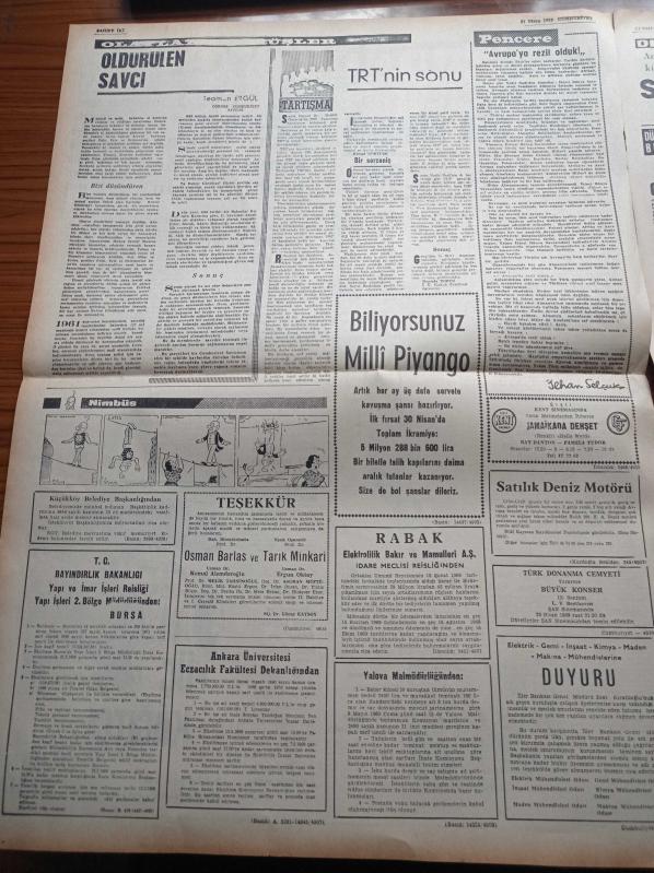 Cumhuriyet Gazetesi - 27 Nisan 1969 - Kurucusu Yunus Nadi - Nadir Nadi - Adnan Menderes'in Dramı Yazı Dizisi - Fikret Otyam - Fenerbahçe Beşiktaş Maçı - TRT Genel Müdürü Adnan Öztrak TRT Her Konuda Tarafsızdır - Nihat Erim İktidar Direnme Hakkını Bizden Önce Kullandı - De Gaulle - Fransız Halkı Sandık Başında - Milli Türk Talebe Birliği adlı eser, Kitap > Süreli Yayınlar > Gazeteler kategorisinde İkinci El olarak satıştadır.