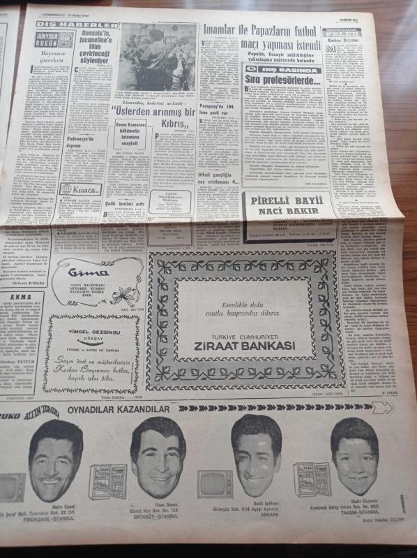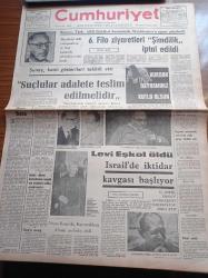 Cumhuriyet Gazetesi - 27 Şubat 1969 - Kurucusu Yunus Nadi - Nadir Nadi - İlhan Selçuk - Şevket Süreyya Aydemir - Nesrin Sipahi - Fatma Girik - Adnan Menderes'in Dramı Yazı Dizisi - Cevdet Sunay Kanlı Gösterileri Takbih Etti - 6. Filo Ziyaretleri Şimdilik İptal Edildi - Levi Eşkol Öldü İsrail'de İktidar Kavgası Başlıyor - Yaser Arafat - Galatasaray adlı eser Türkçe dilindedir.