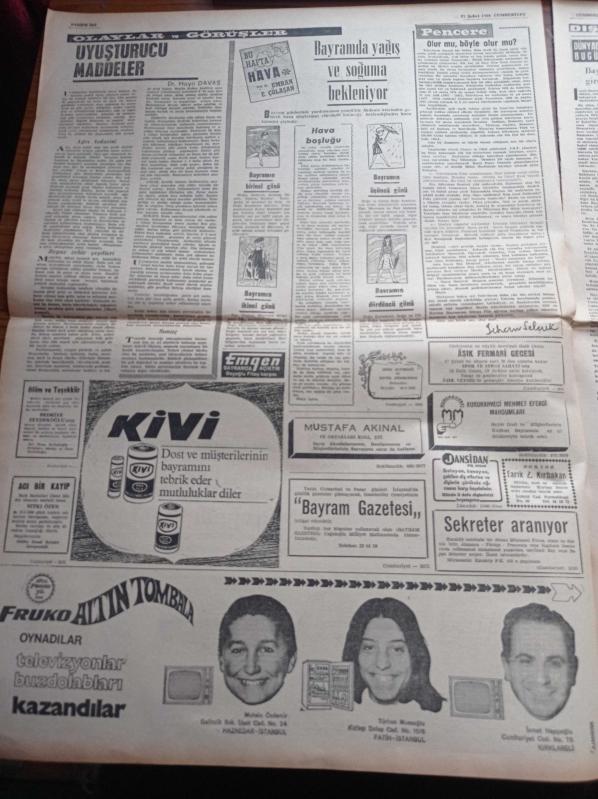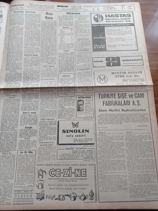 Cumhuriyet Gazetesi - 27 Şubat 1969 - Kurucusu Yunus Nadi - Nadir Nadi - İlhan Selçuk - Şevket Süreyya Aydemir - Nesrin Sipahi - Fatma Girik - Adnan Menderes'in Dramı Yazı Dizisi - Cevdet Sunay Kanlı Gösterileri Takbih Etti - 6. Filo Ziyaretleri Şimdilik İptal Edildi - Levi Eşkol Öldü İsrail'de İktidar Kavgası Başlıyor - Yaser Arafat - Galatasaray adlı eser, Kitap > Süreli Yayınlar > Gazeteler kategorisinde İkinci El olarak satıştadır.