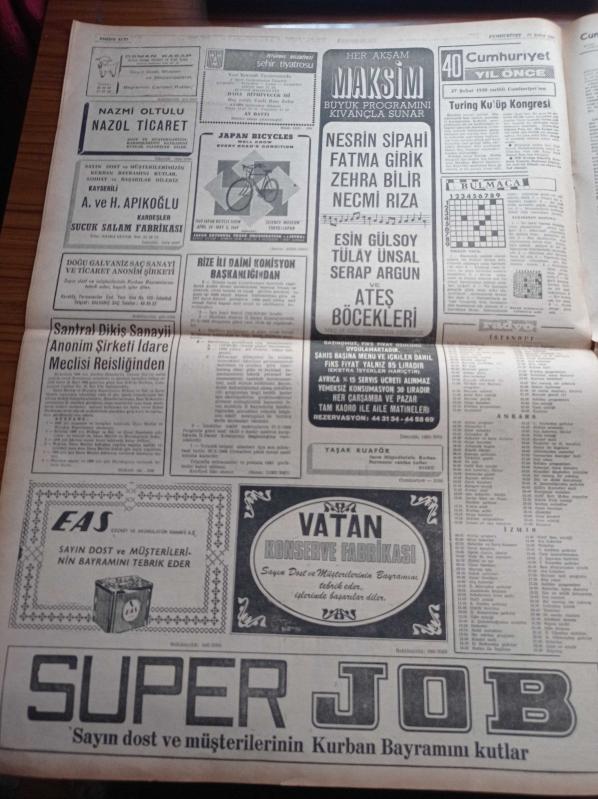 Sayfa Boyutu: 43*60cm Sayfa Sayısı: 8 Cumhuriyet Gazetesi Yıpranma, sararmalar, kupon kesiği ve yırtılmalar zamana bağlı olarak görülebilir