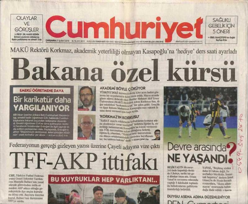 Cumhuriyet Gazetesi 27 Şubat 2019 - Türk Sinemasının Acı Kaybı , Aytaç Armanı Yitirdik GZ94473, en son 20 gün önce güncellenmiştir.