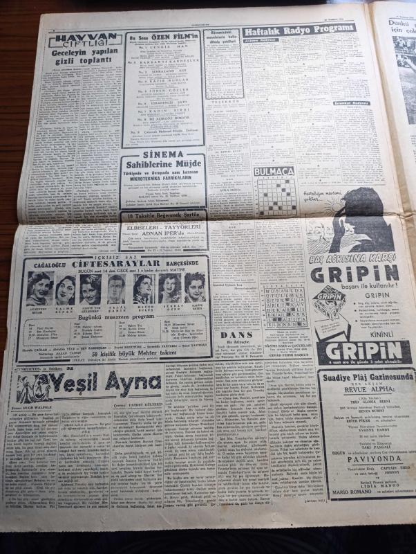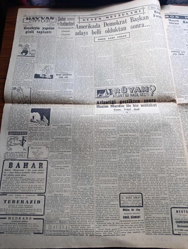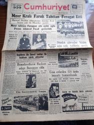 Cumhuriyet Gazetesi - 27 Temmuz 1952 - Tuhaf Bir Hürriyet Anlayışı Yazan Nadir Nadi Başmakale - Mısır Kralı Faruk Tahtta Feragat Etti - Dünkü Güreşler Bizim İçin Çok Talihsiz Geçti - Futbolda Macar Milli Takımına 7 1 Mağlup Olduk Fotoğrafı - Ucuz Evlerden 154 ünün İnşaatı Tamamlandı - Rüyam Kotrası Salıya Geliyor - Hayvan Çiftliği Yazan George Orwel Tercüme Halide Edip Yazı Dizisi - Rüyam Atlantiği Nasıl Geçti Yazan Vedad Abud Yazı Dizisi - Hamiyet Yüceses ve Hacer Buluş Beşiktaş Bahçesinde - Ruh Gurbetinde Yazan Kerime Nadir Yazı Dizisi - İran'da Musaddık Kabinesini Kurdu - Kore'de Müzakereler Yeniden Kesildi - Müzeyyen Senar Saime Sinan Ve Radife Erten Cağaloğlu Çiftesaraylar Bahçesinde - Üstad Münir Nurettin Selçuk Küçük Çiftlik Parkında - Salahaddin Pınar Perihan Altındağ Sözeri Küçük Çiftlik Parkında adlı eser, Kitap > Süreli Yayınlar > Gazeteler > Türkiye > Genel > Günlük kategorisinde İkinci El olarak satıştadır.