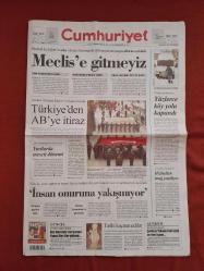 Cumhuriyet Gazetesi 28 Aralık 2006 Meclis'e Gitmeyiz,Türkiye'den AB'ye İtiraz,Erdoğan Adaysa Biz Yokuz,Hizbullah İmaj Peşinde,Kulüplere İddaa Güvencesi,Atatürk İçin Koştular,Yıldırım'a Tahkim'den İndirim adlı eser, Kitap > Süreli Yayınlar > Gazeteler > Türkiye > Genel > Günlük kategorisinde İkinci El olarak satıştadır.