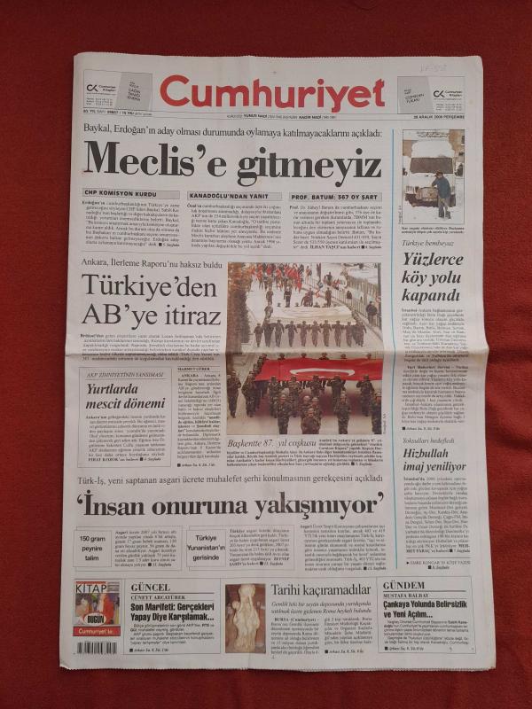 Kitap 2006 yılında yayınlanmıştır. 20 sayfadır. Cumhuriyet Gazetesi 28 Aralık 2006 Meclis'e Gitmeyiz,Türkiye'den AB'ye İtiraz,Erdoğan Adaysa Biz Yokuz,Hizbullah İmaj Peşinde,Kulüplere İddaa Güvencesi,Atatürk İçin Koştular,Yıldırım'a Tahkim'den İndirim adlı eser Türkçe dilindedir.