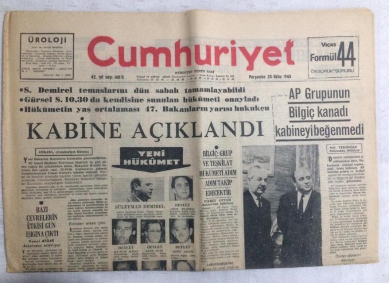 Cumhuriyet Gazetesi 28 Ekim 1965 - Kabine Açıklandı Yeni Hükumet - GZ19135, en son 20 gün önce güncellenmiştir.