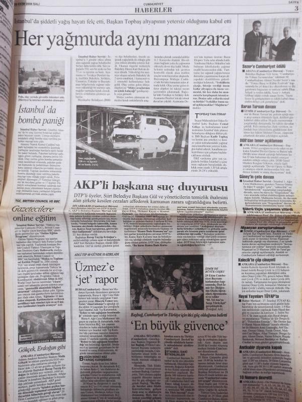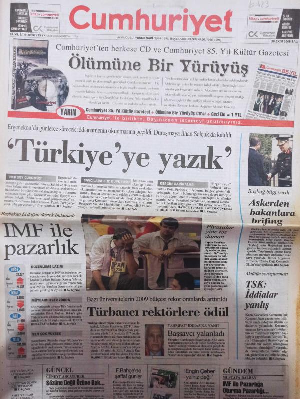 Cumhuriyet Gazetesi - 28 Ekim 2008 - Ertuğrul Kazancı - Muammer Aydın - Mehmet Faraç - Özgen Acar - Ahmet Davutoğlu - Recep Tayyip Erdoğan - Yıpranma, Sararma, Yırtılmalar Zamana Bağlı Olarak Görülebilir.