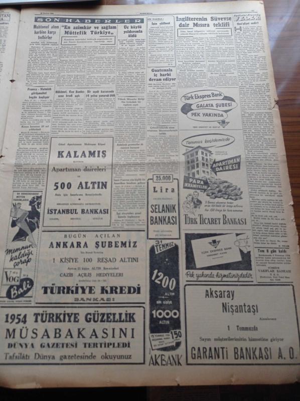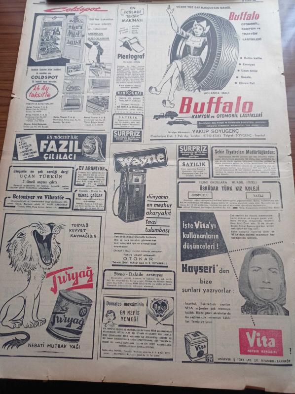 Cumhuriyet Gazetesi - 28 Haziran 1954 - Dış Ticaret Rejimi Etrafında Tetkikler - Büyük Kaybımız Yunus Nadi'nin 9. Yıldönümü - Dün Macaristan Brezilyayı Almanya Da Yugoslavya'yı Yendiler - Seçim Kanununda Değişiklik - Dün Florya Plajlarına 150.000 Kişi Gitti - Şeker İstihsaline 22 Temmuzda Başlanıyor - Bedri Rahmi Eyüboğlu Pazartesi Konuşmaları - Muhtemel Atom Harbine Karşı Tedbirler - Selanik Bankası - İstanbul Camileri Yazı Dizisi - Gül Kupası Atletizm Müsabakaları - Resimli Romanımız Ecel Gemisi - Bu Günün En Meşhur Kadın Casusları Yazı Dizisi - Macar Futbol Yıldızı Brezilyalı Bauer'i Şişe İle Yaraladı - Güneş Tutulması Filme Alınacak - Sanatçı Nevin Aypar Puro Tuvalet Sabunları Kullanıyorum Diyor - Pond's Kremleri - Pan American - Turyağ Nebati Mutbak Yağı - Vita Mutbak Margarini - Buffalo Kamyon Ve Otomobil Lastikleri - Fazıl Çil İlacı adlı eser, Kitap > Süreli Yayınlar > Gazeteler > Türkiye > Genel > Günlük kategorisinde İkinci El olarak satıştadır.
