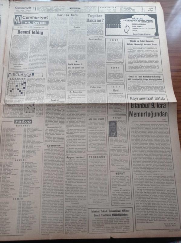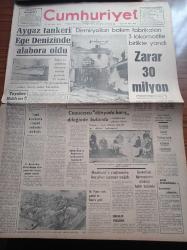 Sayfa Boyutu: 43*60cm Sayfa Sayısı: 8 Cumhuriyet Gazetesi Yıpranma, sararmalar, kupon kesiği ve yırtılmalar zamana bağlı olarak görülebilir