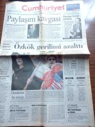 Sayfa Boyutu: 38*56cm Sayfa Sayısı: 20 Cumhuriyet Gazetesi Yıpranma, sararmalar, kupon kesiği ve yırtılmalar zamana bağlı olarak görülebilir