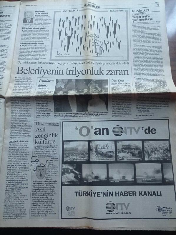 Cumhuriyet Gazetesi - 28 Mart 2003 - AKP Hükümeti Savaşı Fırsat Bildi Kadrolaşmayı Arttırdı - ABD Irak'ta Aslan Payını Bırakmıyor İngiltere Kızgın Rusya Ve Fransa Panikte - İstanbul'da 7 Bin Kişi Irak'ta Savaşa Hayır Yürüyüşü Yaptı - Deniz Gezmiş - Harun Karadeniz - Sony'nin Ürettiği Robot Konuşuyor Şarkı Söylüyor Dans Ediyor - Mediha Uçan 67 Yaşında Usta Gemici Oldu adlı eser Türkçe dilindedir.