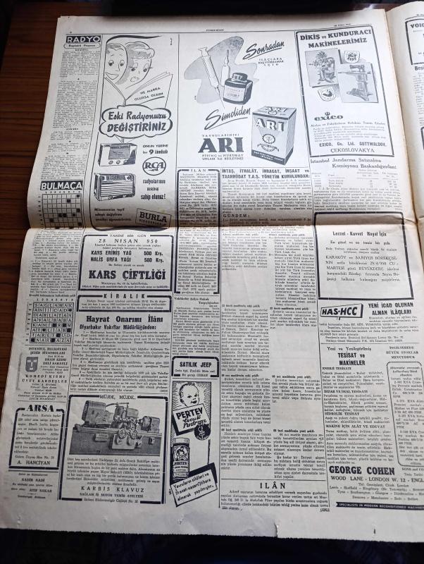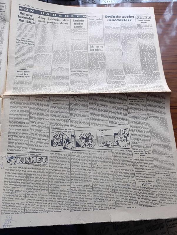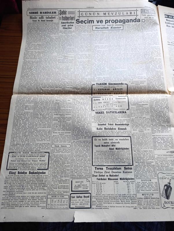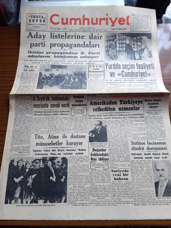 Cumhuriyet Gazetesi - 28 Nisan 1950 - Daha Çok Ve Daha Çabuk Yazan Abidin Daver Köşe Yazısı - Aday Listelerine Parti Propagandaları - Yurtta Seçim Faaliyeti Ve Cumhuriyet Gazetesi - Cumhuriyet Gazetesinin 12 Yazarının Seçim Çalışmalarını Yapacağı Yerler Haritası - Halil Özyörük Hakkındaki Neşriyata Cevap Verdi - Cumhuriyet Halk Partisinin Seçim Beyannamesi - Tito Atina İle Dostane Münasebetler Kuruyor - Amerika'dan Türkiye'ye Celbedilen Uzmanlar - Boğazlar Hakkında Rus İddiası - Sütlüce Faciasının Dünkü Duruşması - Seçim Ve Propaganda Yazan Doçent Doktor Nurullah Kunter - Büyük Doğu Neşriyat Müdürü Neslihan Kısakürek Hastaneye Kaldırıldı - Kısmet Nakleden Hatice Vildan Yazı Dizisi - Transfer Mevsimi Koysak Yazan Burhan Felek Köşe Yazısı - Üç Silahşörler Yazan Alexandre Dumas Çizgi Roman - Mayıs İçinde İstanbul'a Gelecek Sunderland Takımına Dair Yazan Ömer Besim - Sinema Yıldızı Shirley Temple Belediye Reisi Seçildi - İstanbul Ankara Radyosu Programı - Arı Unları - Necipbey Briyantini adlı eser, Kitap > Süreli Yayınlar > Gazeteler > Türkiye > Genel > Günlük kategorisinde İkinci El olarak satıştadır.
