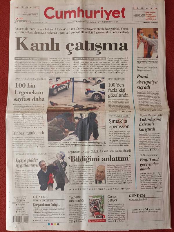 Cumhuriyet Gazetesi 28 Nisan 2009 Yargıç Güvencesi Yok Ediliyor, Teziç ve Yüzbaşıoğlu'ndan Destek,Domuz Gribi Avrupa'ya Geldi, Trabzon'da Fatura Yanal'a,Yusuf'tan Dobra Dobra, Şimdi de Teşvik Sıkıntısı,Baskette De Derbi Klasiği adlı eser, Kitap > Süreli Yayınlar > Gazeteler > Türkiye > Genel > Günlük kategorisinde İkinci El olarak satıştadır.