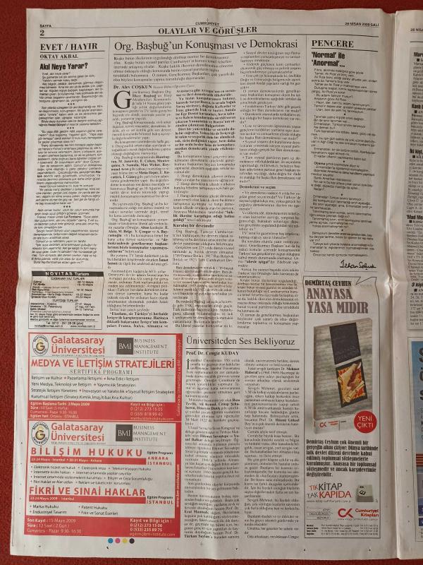 Kitap 2009 yılında yayınlanmıştır. 20 sayfadır. Cumhuriyet Gazetesi 28 Nisan 2009 Yargıç Güvencesi Yok Ediliyor, Teziç ve Yüzbaşıoğlu'ndan Destek,Domuz Gribi Avrupa'ya Geldi, Trabzon'da Fatura Yanal'a,Yusuf'tan Dobra Dobra, Şimdi de Teşvik Sıkıntısı,Baskette De Derbi Klasiği adlı eser Türkçe dilindedir.