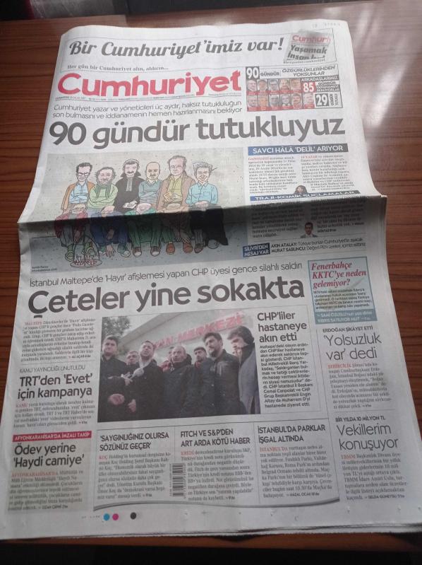 Cumhuriyet Gazetesi - 28 Ocak 2017 - Arda Turan Atatürk Sevgimi Sorgulatmam - TFF'ye Küfür Şikayeti - Belgrad Ormanı Dekovil Tehdidi - 90 Gündür Tutukluyuz - TRT'den Evet İçin Kampanya - Ödev Yerine Haydi Camiye adlı eser, Kitap > Süreli Yayınlar > Gazeteler kategorisinde İkinci El olarak satıştadır.