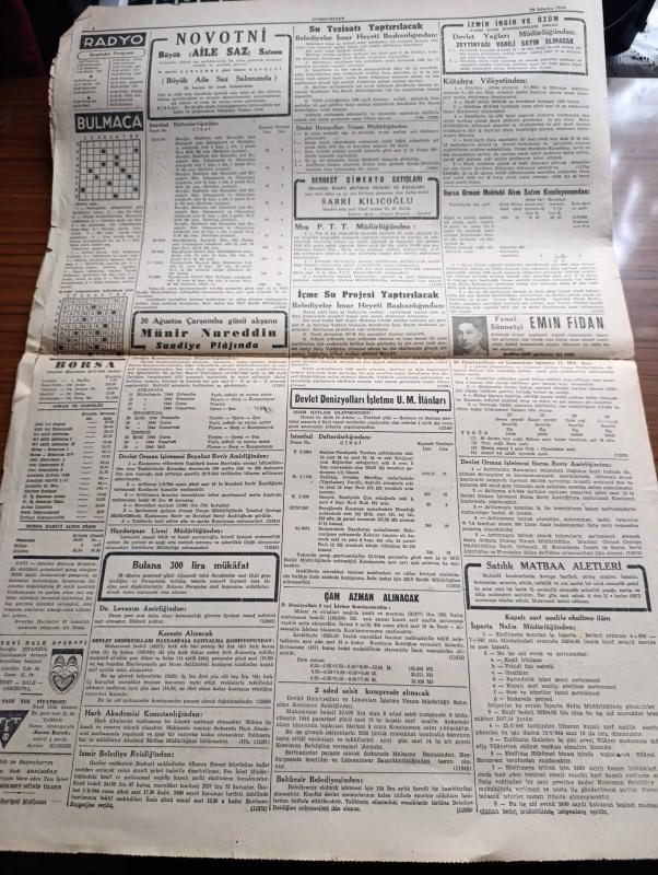 Cumhuriyet Gazetesi - 29 Ağustos 1944 - Harb Ahlakı Yazan Nadir Nadi Köşe Yazısı - Müttefiklerin Bulgaristan Sulh Şartları - 1 İşgal Olunan Bütün Toprakların Tahliye Edilmesi 2 Müttefiklere Tam Manasıyla Yardım - Bulgaristan'ın Almanya'ya İlanı Harb Etmesi Bekleniyor - Müstakbel Balkan Konferansının İçinde Toplanması Düşünülen Dolmabahçe Sarayı Fotoğraf- Alman Hududuna 110 Km. Kaldı - Paris'e Yeni Alman Hava Hücumları - Sovyetler Macaristana Girdiler - Kazanova Maceraları Taksim Belediye Gazinosunda - Askeri Vaziyet Yazan Emekli General H. Emir Erkilet Yazı Dizisi - Bulgaristan Ve Romanya Mihvere Nasıl Girmişlerdi Yazan Eski Romanya Hariciye Nazırı M. G. Gafenku - Bulgaristan Ve Müttefikler Yazan Ömer Rıza Doğrul Köşe Yazısı - Maarif Vekili Hasan Ali Yücel Dün Hadımköyüne Gitti - Yahudiler Hakkında Tahdidat Kaldırıldı - Kırışın Bakalım Yazan Burhan Felek Köşe Yazısı - Bugünkü Radyo Programı - Fenni Sünnetçi Emin Fidan - Borsa - Sadi Tek Tiyatrosu Suad Gün Konseri - Yeni Halk Opereti, Yunus Nadi tarafından kaleme alınmıştır. Cumhuriyet Gazetesi - 29 Ağustos 1944 - Harb Ahlakı Yazan Nadir Nadi Köşe Yazısı - Müttefiklerin Bulgaristan Sulh Şartları - 1 İşgal Olunan Bütün Toprakların Tahliye Edilmesi 2 Müttefiklere Tam Manasıyla Yardım - Bulgaristan'ın Almanya'ya İlanı Harb Etmesi Bekleniyor - Müstakbel Balkan Konferansının İçinde Toplanması Düşünülen Dolmabahçe Sarayı Fotoğraf- Alman Hududuna 110 Km. Kaldı - Paris'e Yeni Alman Hava Hücumları - Sovyetler Macaristana Girdiler - Kazanova Maceraları Taksim Belediye Gazinosunda - Askeri Vaziyet Yazan Emekli General H. Emir Erkilet Yazı Dizisi - Bulgaristan Ve Romanya Mihvere Nasıl Girmişlerdi Yazan Eski Romanya Hariciye Nazırı M. G. Gafenku - Bulgaristan Ve Müttefikler Yazan Ömer Rıza Doğrul Köşe Yazısı - Maarif Vekili Hasan Ali Yücel Dün Hadımköyüne Gitti - Yahudiler Hakkında Tahdidat Kaldırıldı - Kırışın Bakalım Yazan Burhan Felek Köşe Yazısı - Bugünkü Radyo Programı - Fenni Sünnetçi Emin Fidan - Borsa - Sadi Tek Tiyatrosu Suad Gün Konseri - Yeni Halk Opereti adlı eser Türkçe dilindedir.