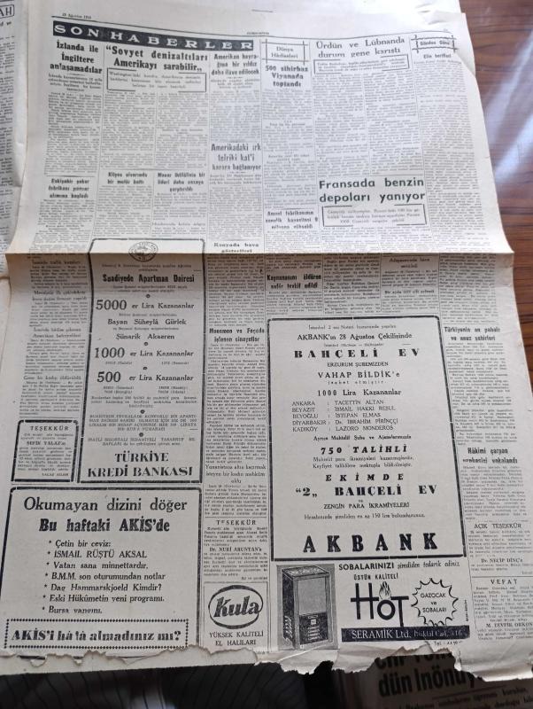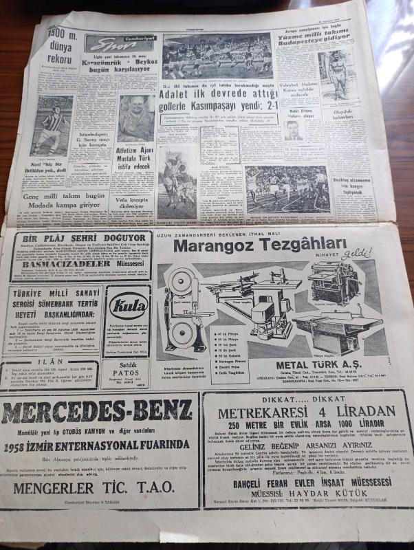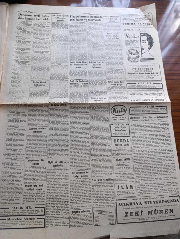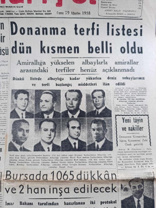 Cumhuriyet Gazetesi - 29 Ağustos 1958 - Hazine Hissesi Kaldırılmıyor - Donanma Terfi Listesi Dünya Kısmen Belli Oldu - Faik Taluy Hayri Bars Fotoğraf - İstanbul Emniyet Müdürlüğüne Tayin Edilen Gümüşhane Valisi Faruk Oktar - Sirkeciden Kazlıçeşmeye Sahil Yolu Cumhuriyet Bayramı'nda Açılıyor - Büyük Bir Tıbbi Ecza Kaçakçılığı - Tiyatrolarımız Hakkında Yeni Karar Ve Tasavvurlar - NATO Başkomutanı General Nostad'ın Ankara ve İzmir'de Teftişleri Fotoğraf - Yılanların Öcü Yazan Fakir Baykurt Yazı Dizisi - Türkiye İş Bankası Şehzadebaşı Şubesi Açılıyor - 500 Sihirbaz Viyana'da Toplandı - Ala Geyik Yazan Yusuf Karataylı Çizen Sezgin Burak - Fenerbahçeli Naci Erdem Hiçbir İhtilafım Yok Dedi - İstanbulspor Galatasaray Maçı İçin Kampta - 1500 Metre Dünya Rekorunu Avustralyalı Herb Elliott Kazandı, Yunus Nadi tarafından kaleme alınmıştır. Cumhuriyet Gazetesi - 29 Ağustos 1958 - Hazine Hissesi Kaldırılmıyor - Donanma Terfi Listesi Dünya Kısmen Belli Oldu - Faik Taluy Hayri Bars Fotoğraf - İstanbul Emniyet Müdürlüğüne Tayin Edilen Gümüşhane Valisi Faruk Oktar - Sirkeciden Kazlıçeşmeye Sahil Yolu Cumhuriyet Bayramı'nda Açılıyor - Büyük Bir Tıbbi Ecza Kaçakçılığı - Tiyatrolarımız Hakkında Yeni Karar Ve Tasavvurlar - NATO Başkomutanı General Nostad'ın Ankara ve İzmir'de Teftişleri Fotoğraf - Yılanların Öcü Yazan Fakir Baykurt Yazı Dizisi - Türkiye İş Bankası Şehzadebaşı Şubesi Açılıyor - 500 Sihirbaz Viyana'da Toplandı - Ala Geyik Yazan Yusuf Karataylı Çizen Sezgin Burak - Fenerbahçeli Naci Erdem Hiçbir İhtilafım Yok Dedi - İstanbulspor Galatasaray Maçı İçin Kampta - 1500 Metre Dünya Rekorunu Avustralyalı Herb Elliott Kazandı adlı eser Türkçe dilindedir.