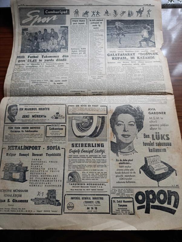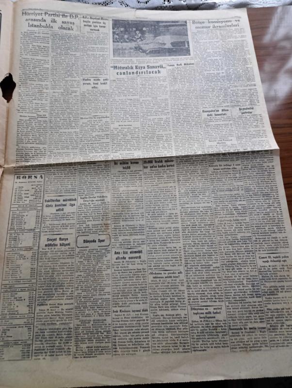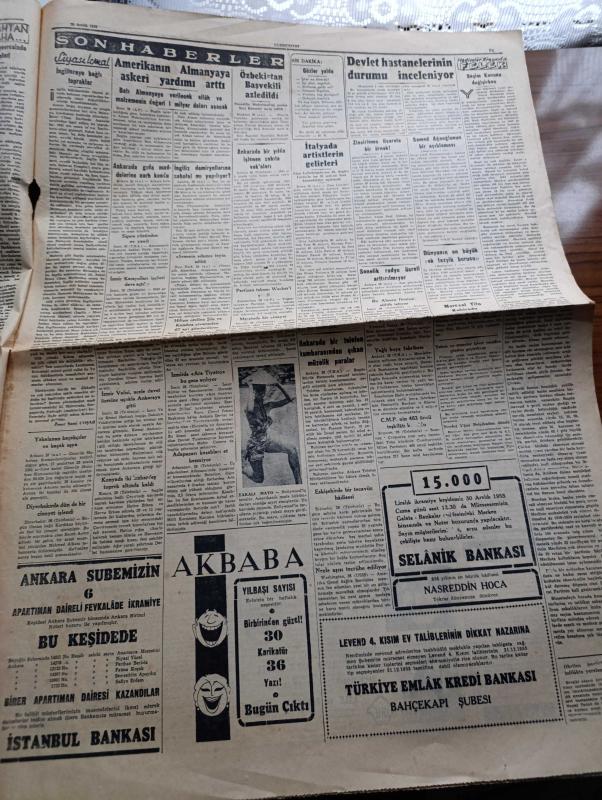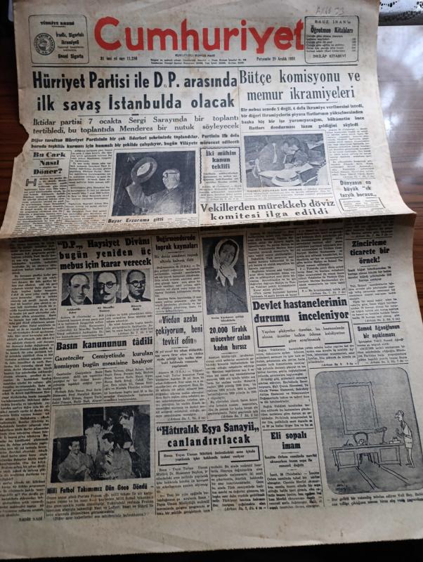 Cumhuriyet Gazetesi - 29 Aralık 1955 - Bu Çark Nasıl Döner Yazan Nadir Nadi Köşe Yazısı - Hürriyet Partisi İle Demokrat Parti Arasında İlk Savaş İstanbul'da Olacak - Celal Bayar Erzurum'a Gitti - Demokrat Parti Haysiyet Divanı Bugün Yeniden Üç Mebus Salahattin Toker Ali Muzaffer Tanöver Ve Hüseyin Balık İçin Karar Verecek - Milli Futbol Takımımız Paris'ten Döndü - Devlet Hastanelerinin Durumu İnceleniyor - NATO'dan Yükselen İkaz Sesleri Yazan Aydemir Balkan - Kırlangıç Yuvası Yazan Taylor Caldwell Yazı Dizisi - Amerika'nın Almanya'ya Askeri Yardımı Arttı - Özbekistan Başvekili Nureddin Muhittinof Azledildi - Resimli Romanımız Çalınan Tabanca Yazan George Simenon - Pakistan Kurucusu Mohammed Ali Cinnah Doğum Yıldönümü Münasebetiyle Yazan Zafer Hasan Ayberk - Opon Ağrı Kesici - Galatasaray Dostluk Kupasını Kazandı - Galatasaray Kulübü Başkanı Refik Selimoğlu İstifasını Geri Aldı adlı eser, Kitap > Süreli Yayınlar > Gazeteler > Türkiye > Genel > Günlük kategorisinde İkinci El olarak satıştadır.