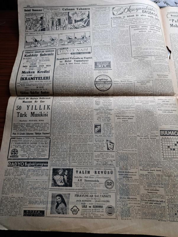 Cumhuriyet Gazetesi - 29 Aralık 1955 - Bu Çark Nasıl Döner Yazan Nadir Nadi Köşe Yazısı - Hürriyet Partisi İle Demokrat Parti Arasında İlk Savaş İstanbul'da Olacak - Celal Bayar Erzurum'a Gitti - Demokrat Parti Haysiyet Divanı Bugün Yeniden Üç Mebus Salahattin Toker Ali Muzaffer Tanöver Ve Hüseyin Balık İçin Karar Verecek - Milli Futbol Takımımız Paris'ten Döndü - Devlet Hastanelerinin Durumu İnceleniyor - NATO'dan Yükselen İkaz Sesleri Yazan Aydemir Balkan - Kırlangıç Yuvası Yazan Taylor Caldwell Yazı Dizisi - Amerika'nın Almanya'ya Askeri Yardımı Arttı - Özbekistan Başvekili Nureddin Muhittinof Azledildi - Resimli Romanımız Çalınan Tabanca Yazan George Simenon - Pakistan Kurucusu Mohammed Ali Cinnah Doğum Yıldönümü Münasebetiyle Yazan Zafer Hasan Ayberk - Opon Ağrı Kesici - Galatasaray Dostluk Kupasını Kazandı - Galatasaray Kulübü Başkanı Refik Selimoğlu İstifasını Geri Aldı, Yunus Nadi tarafından kaleme alınmıştır. Cumhuriyet Gazetesi - 29 Aralık 1955 - Bu Çark Nasıl Döner Yazan Nadir Nadi Köşe Yazısı - Hürriyet Partisi İle Demokrat Parti Arasında İlk Savaş İstanbul'da Olacak - Celal Bayar Erzurum'a Gitti - Demokrat Parti Haysiyet Divanı Bugün Yeniden Üç Mebus Salahattin Toker Ali Muzaffer Tanöver Ve Hüseyin Balık İçin Karar Verecek - Milli Futbol Takımımız Paris'ten Döndü - Devlet Hastanelerinin Durumu İnceleniyor - NATO'dan Yükselen İkaz Sesleri Yazan Aydemir Balkan - Kırlangıç Yuvası Yazan Taylor Caldwell Yazı Dizisi - Amerika'nın Almanya'ya Askeri Yardımı Arttı - Özbekistan Başvekili Nureddin Muhittinof Azledildi - Resimli Romanımız Çalınan Tabanca Yazan George Simenon - Pakistan Kurucusu Mohammed Ali Cinnah Doğum Yıldönümü Münasebetiyle Yazan Zafer Hasan Ayberk - Opon Ağrı Kesici - Galatasaray Dostluk Kupasını Kazandı - Galatasaray Kulübü Başkanı Refik Selimoğlu İstifasını Geri Aldı adlı eser Türkçe dilindedir.