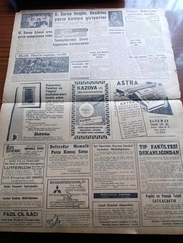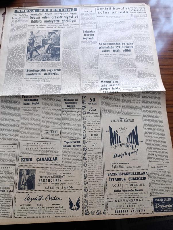 Cumhuriyet Gazetesi - 29 Aralık 1960 - Nezaret Altında Bulunan 65 Kişinin İsimleri Açıklandı - Mühim Bir Edebi Hadise Ölümünden 4 Yıl Sonra Reşat Nuri Güntekin'in Bir Romanı Bulundu - İstanbul Temsilciliklerinin Hepsini CHP Adayları Kazandı - Profesör Tarık Zafer Tunaya - Devlet Ve Hükümet Başkanı Cemal Gürsel İç Olaylarla İlgili Bir Demeç Verdi - Uşak Hadiseleri Sanıkları İçin 20 Yıla Kadar Hapis İsteniyor - Topkapı Olayları Günü Teybe Alınan Bir Telsiz Muhaberesi Dinletildi - 60 Sabıkın Gayrımeşru Serveti 12 Milyon Lira - 147'lerle İlgili Kanunun 5. Maddesi Kaldırılıyor - Atatürk'e El Uzatan Köy Öğretmeni Nasıl Yakalandı - 10. Köy Yazan Fakir Baykurt Yazı Dizisi - Amerika'nın En Genç Cumhurbaşkanı Kennedy Hayatı Macera Ve Mücadeleleri Yazan James MacGregor Yazı Dizisi - Burhan Felek Köşe Yazısı - Belçika'da Devam Eden Grevler Siyasi Ve İhtilalci Mahiyette Görülüyor - Af Kanunundan Bu Yana İstanbul'da 172 Hırsızlık Vakası Tesbit Edildi - Galatasaray Lisesi Orta Grup Şampiyonu Oldu adlı eser, Kitap > Süreli Yayınlar > Gazeteler > Türkiye > Genel > Günlük kategorisinde İkinci El olarak satıştadır.