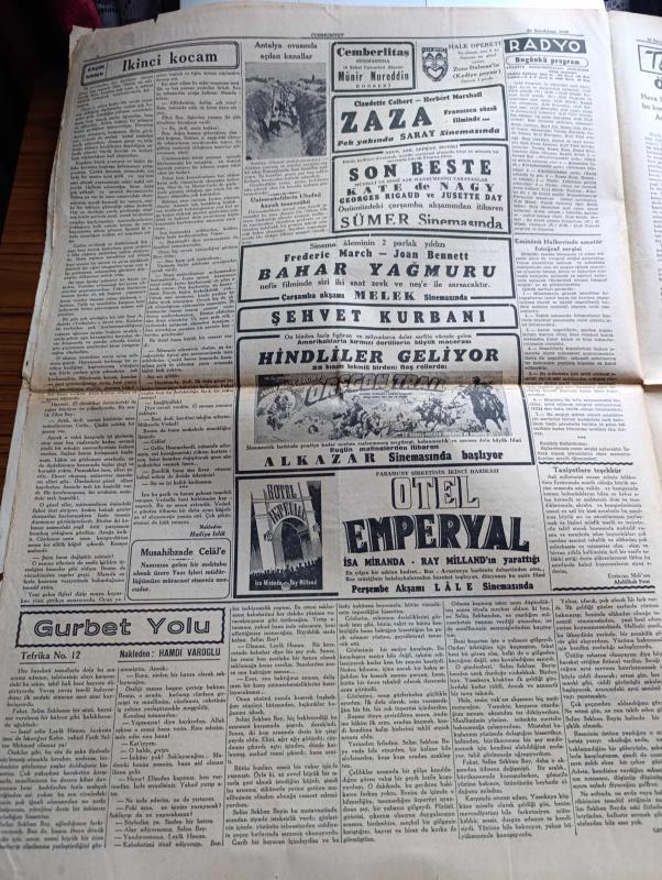 Cumhuriyet Gazetesi - 29 İkincikanun (Ocak) 1940 - Bitarafların İttifakı Yazan Yunus Nadi Başmakale - Milli Felaketimiz Karşısında İngiltere'nin Uzattığı Dost Eli - Balkan Antantı Konseyinin Toplanacağı Belgrad'dan Bir Manzara - İngiliz Askerleri Garp Cephesinde Radyo Dinliyorlar - Fenerbahçe Vefa Maçı Fotoğraf - Milli Şef İsmet İnönü'nün Memleket Seyahati - Roma imparatorluğunun Tarihi Hazineleri - Askerlik Bahisleri Yazan Abidin Daver - Maarif Vekili Hasan Ali Yücel Geliyor - Zaza Filmi Pek Yakında Saray Sinemasında - Hindliler Geliyor Alkazar Sinemasında - İsa Miranda Ray Milland'ın Yarattığı Otel Emperyal Perşembe Akşamı Lale Sinemasında - Hungarya 8 Şişli 1 - Beşiktaş 4 Süleymaniye 1 - Galatasaray 6 Topkapı 0 - Çocuk Köşesi - General Weygand Şerefine Verilen Ziyafet -- Burla Biraderler - Singer Saat - Milli Piyango - Dolmabahçe Stadyumu İnşaatı adlı eser, Kitap > Süreli Yayınlar > Gazeteler > Türkiye > Genel > Günlük kategorisinde İkinci El olarak satıştadır.